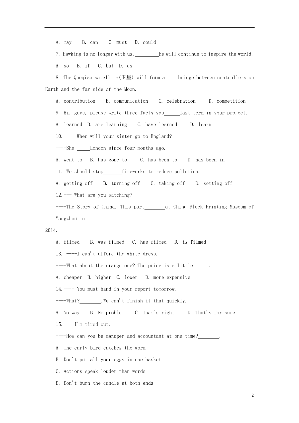 2015年中考真题精品解析 英语(上海卷)精编word版(原卷版)