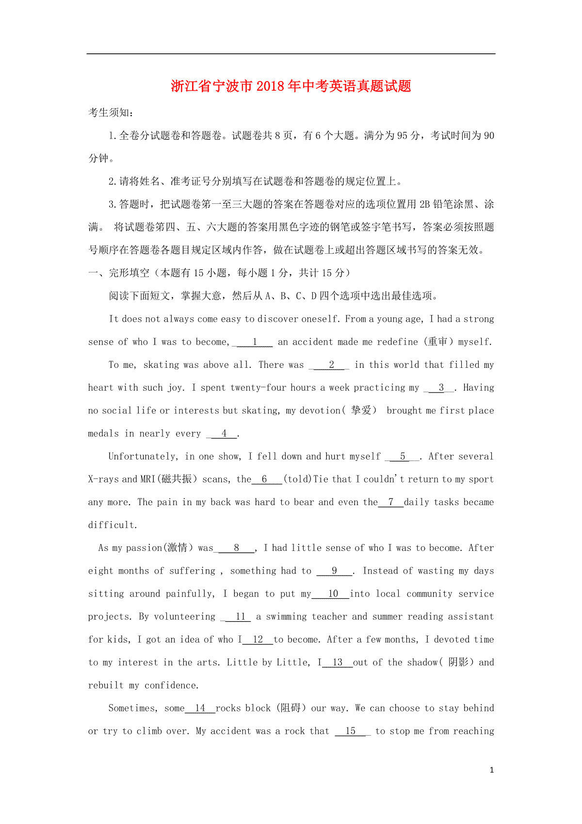 1.浙江省宁波市2018年中考英语真题试题(含答案)