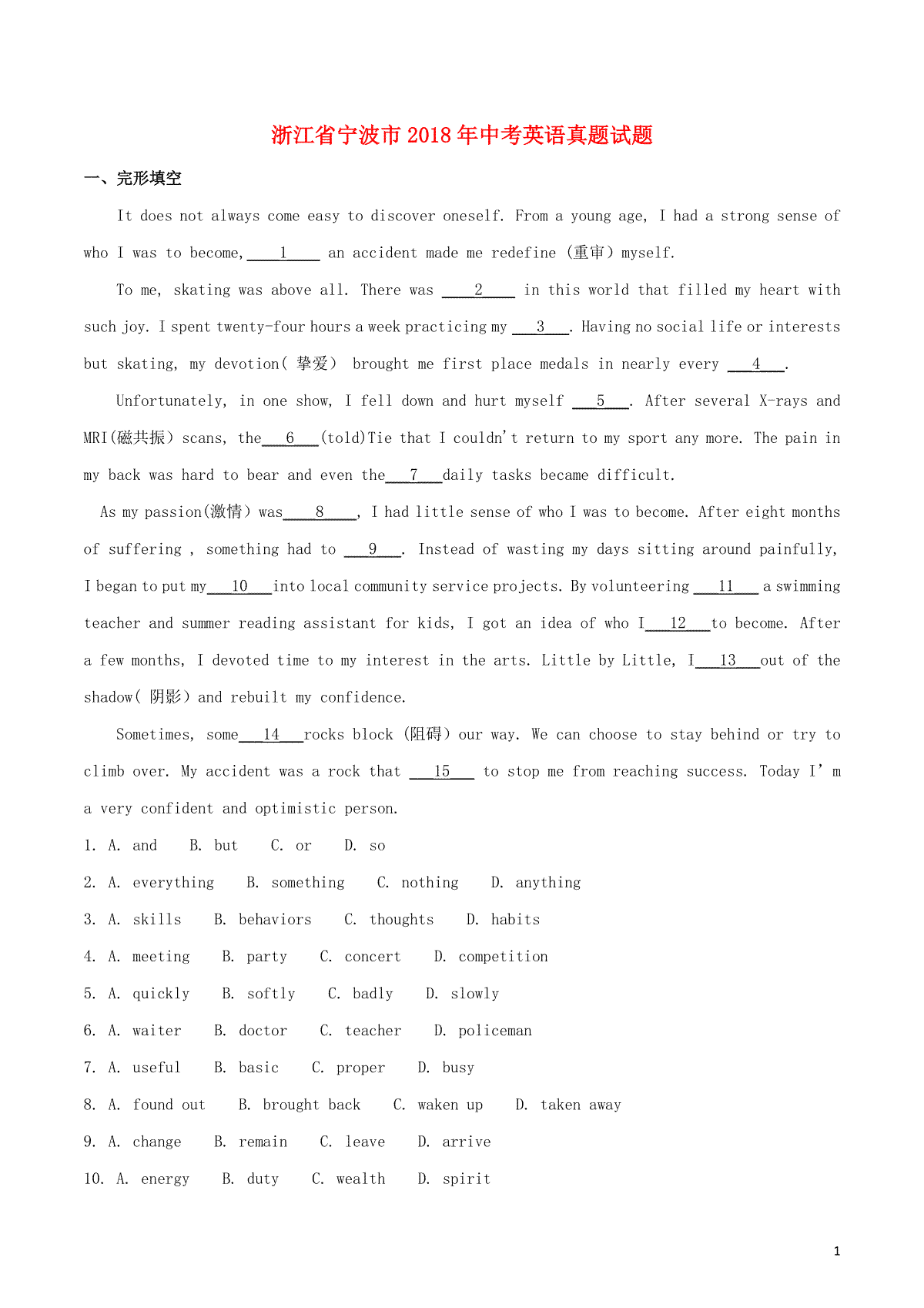 1.浙江省宁波市2018年中考英语真题试题(含解析)