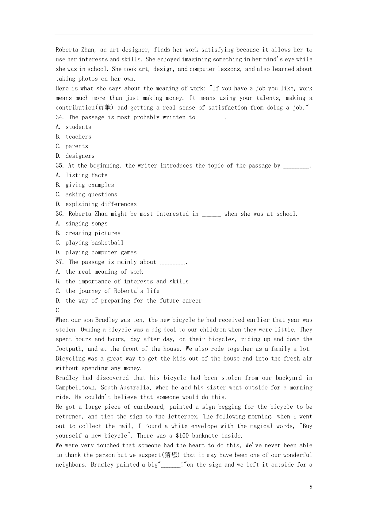 5.浙江省湖州市2018年中考英语真题试题(含答案)
