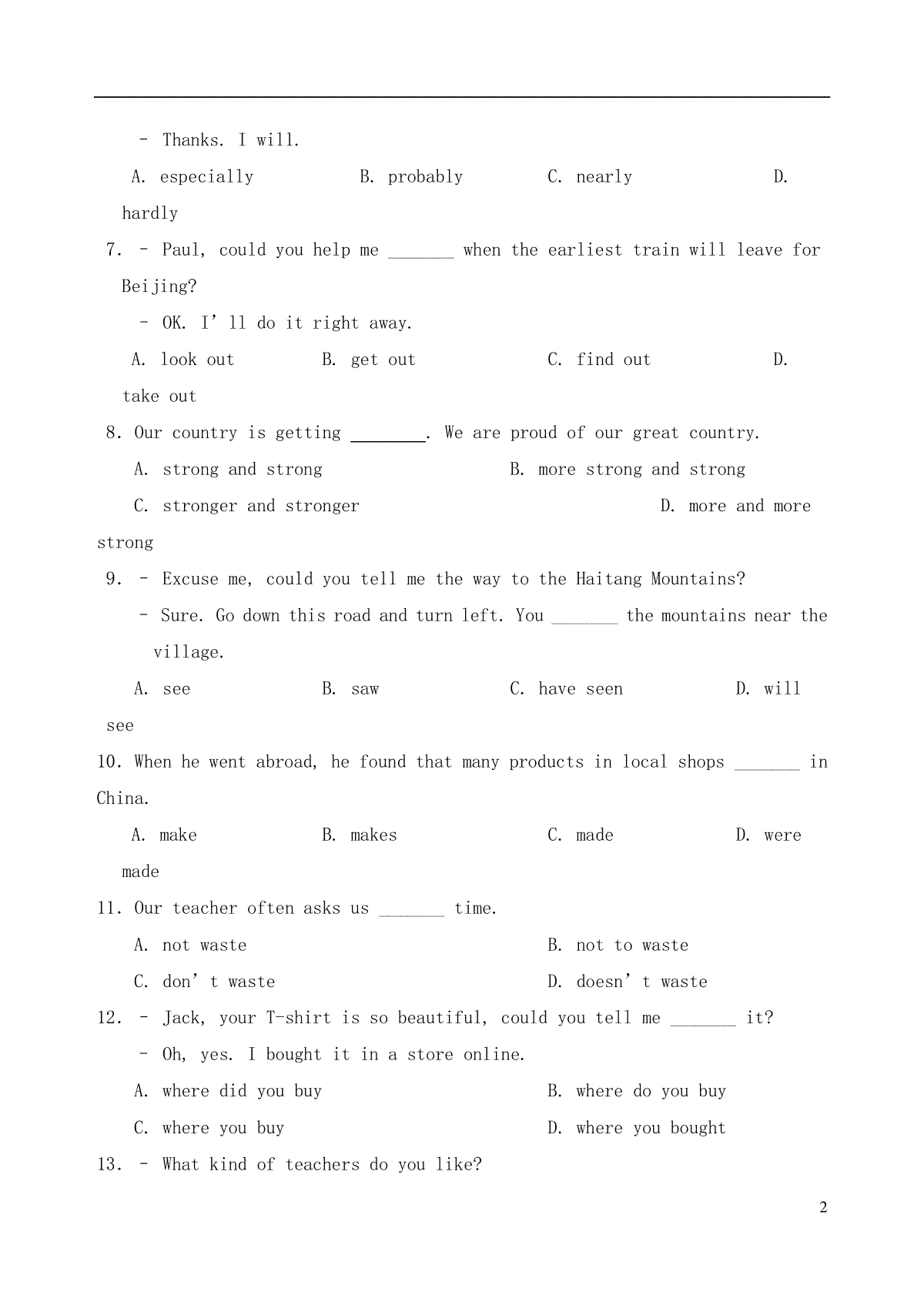 7.福建省2018年中考英语真题试题(B卷,扫描版,含答案)