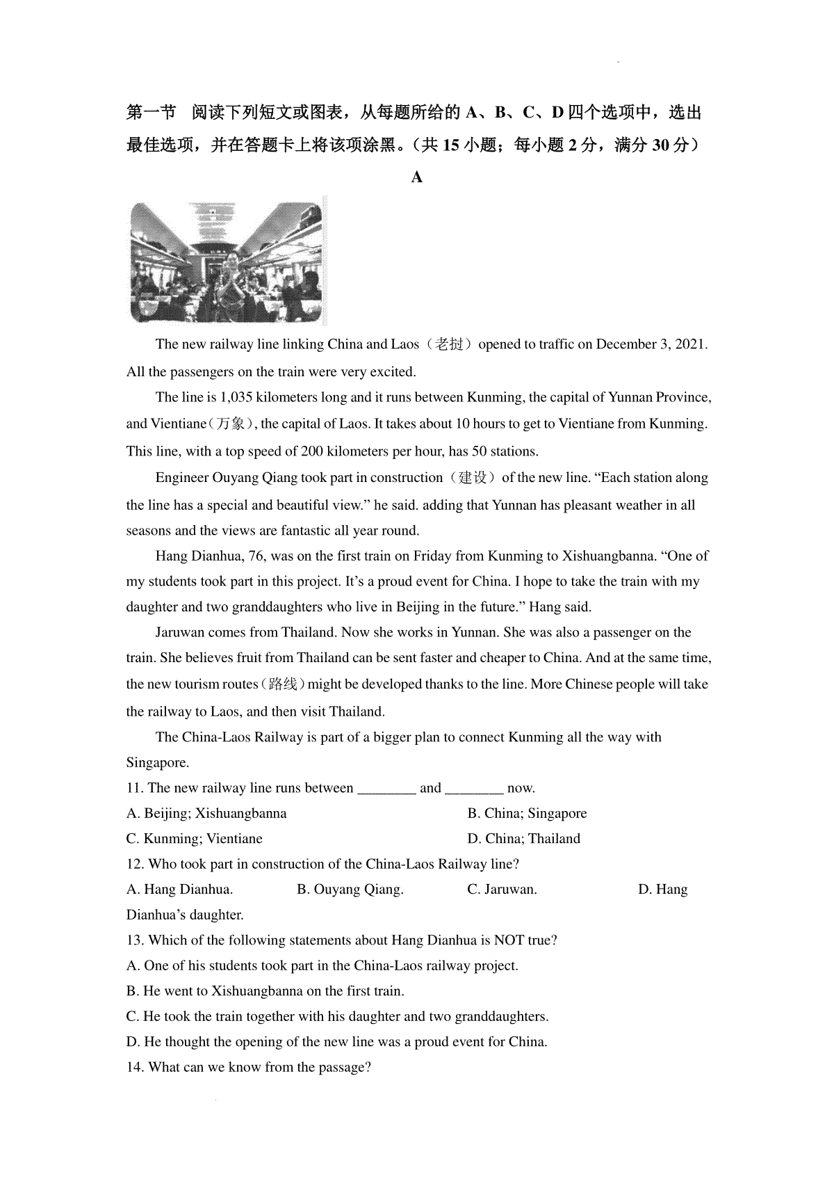 1.精品解析:2022年山东省泰安市中考英语真题(原卷版)