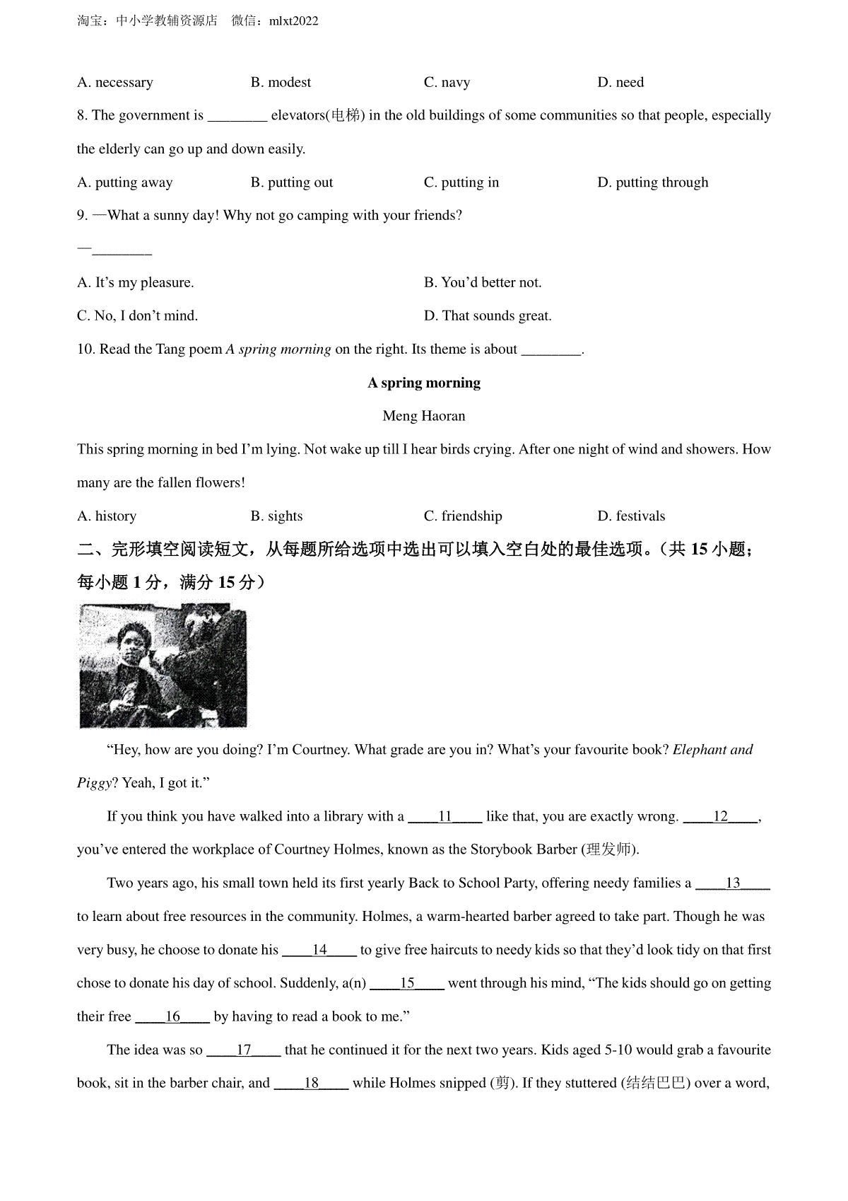 5.精品解析:2022年江苏省扬州市中考英语真题(原卷版)