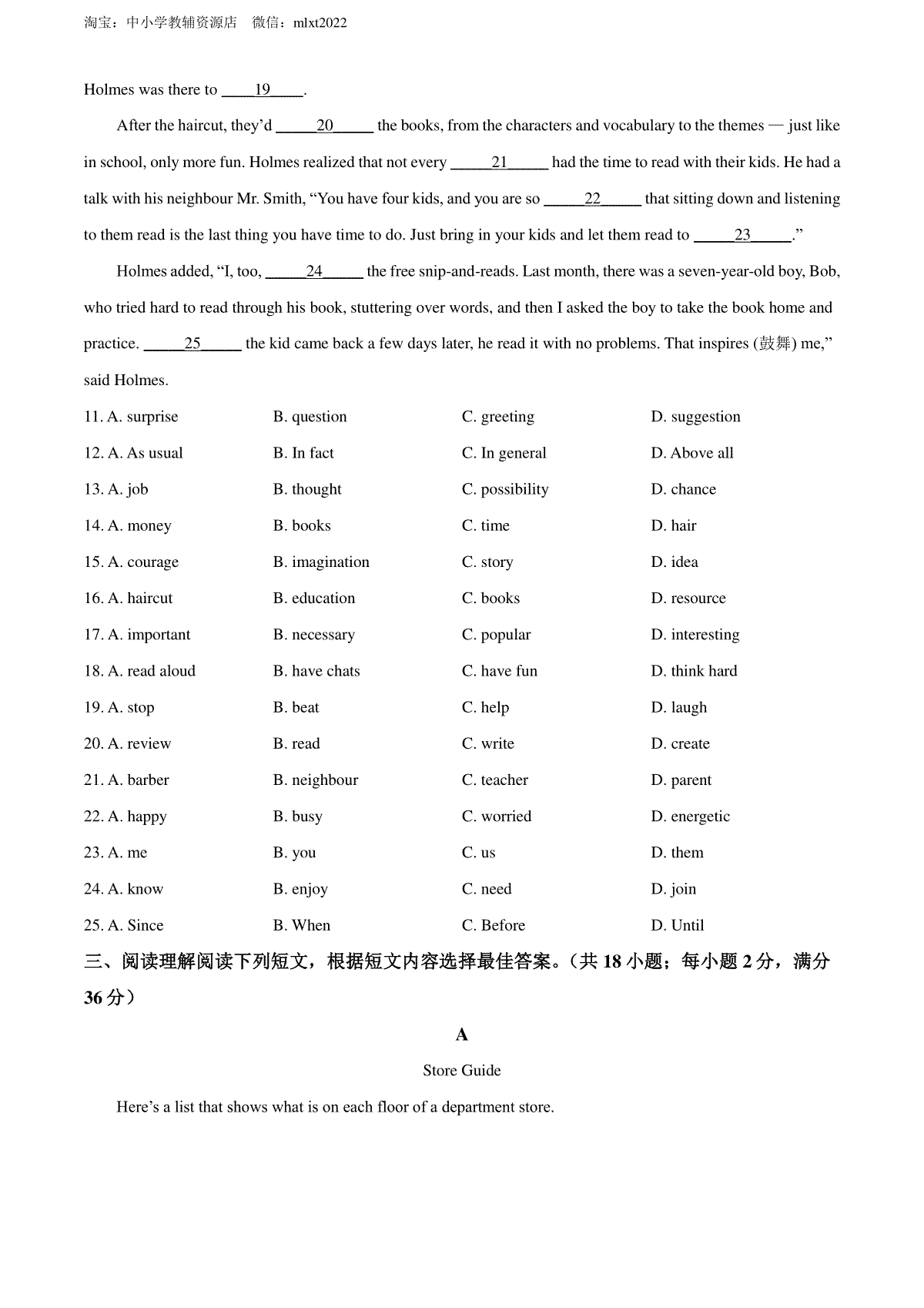 7.精品解析:2022年江苏省徐州市中考英语真题(原卷版)