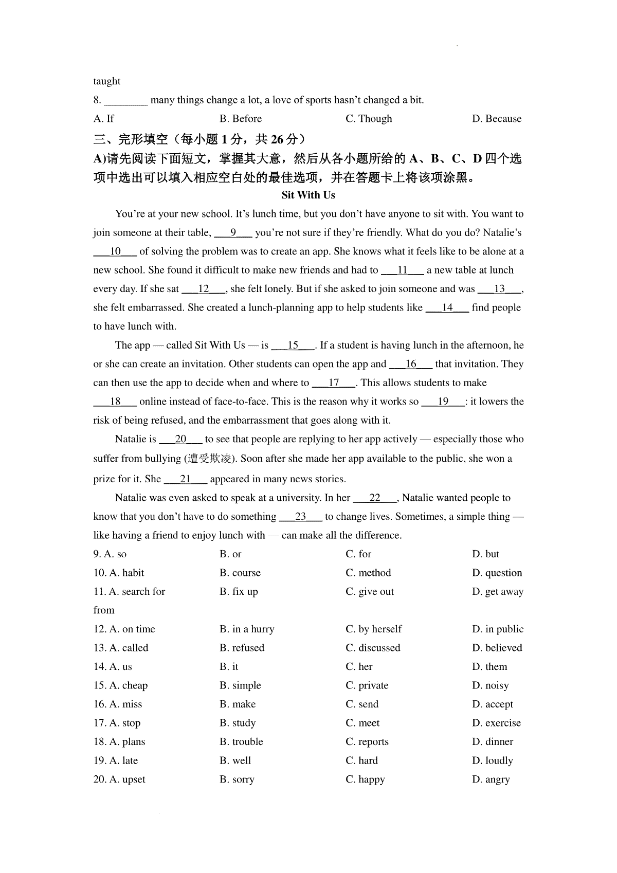 5.精品解析:2022年江苏省连云港市中考英语真题(原卷版)