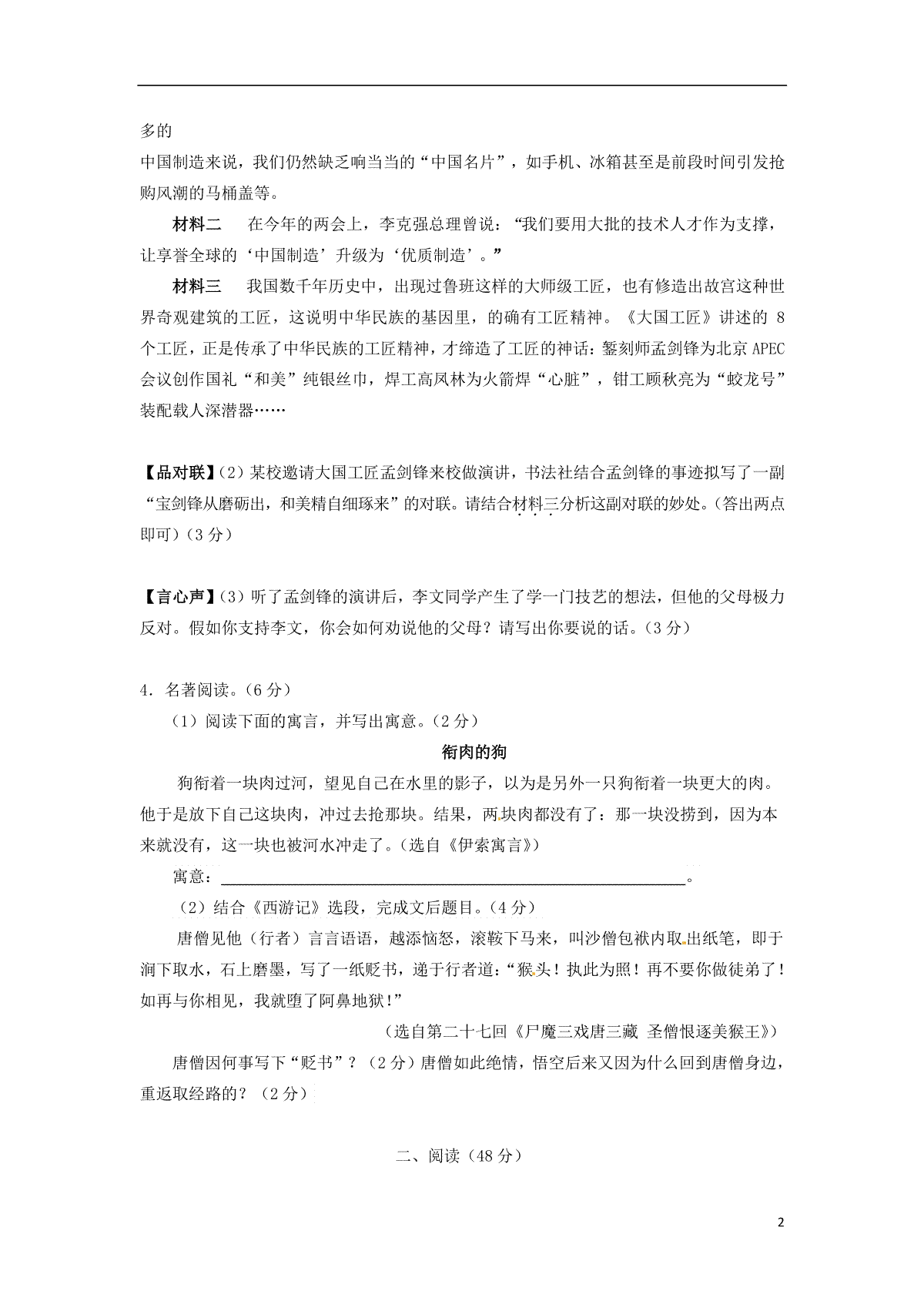 6.福建省泉州市2015年中考语文真题试题(扫描版,无答案)