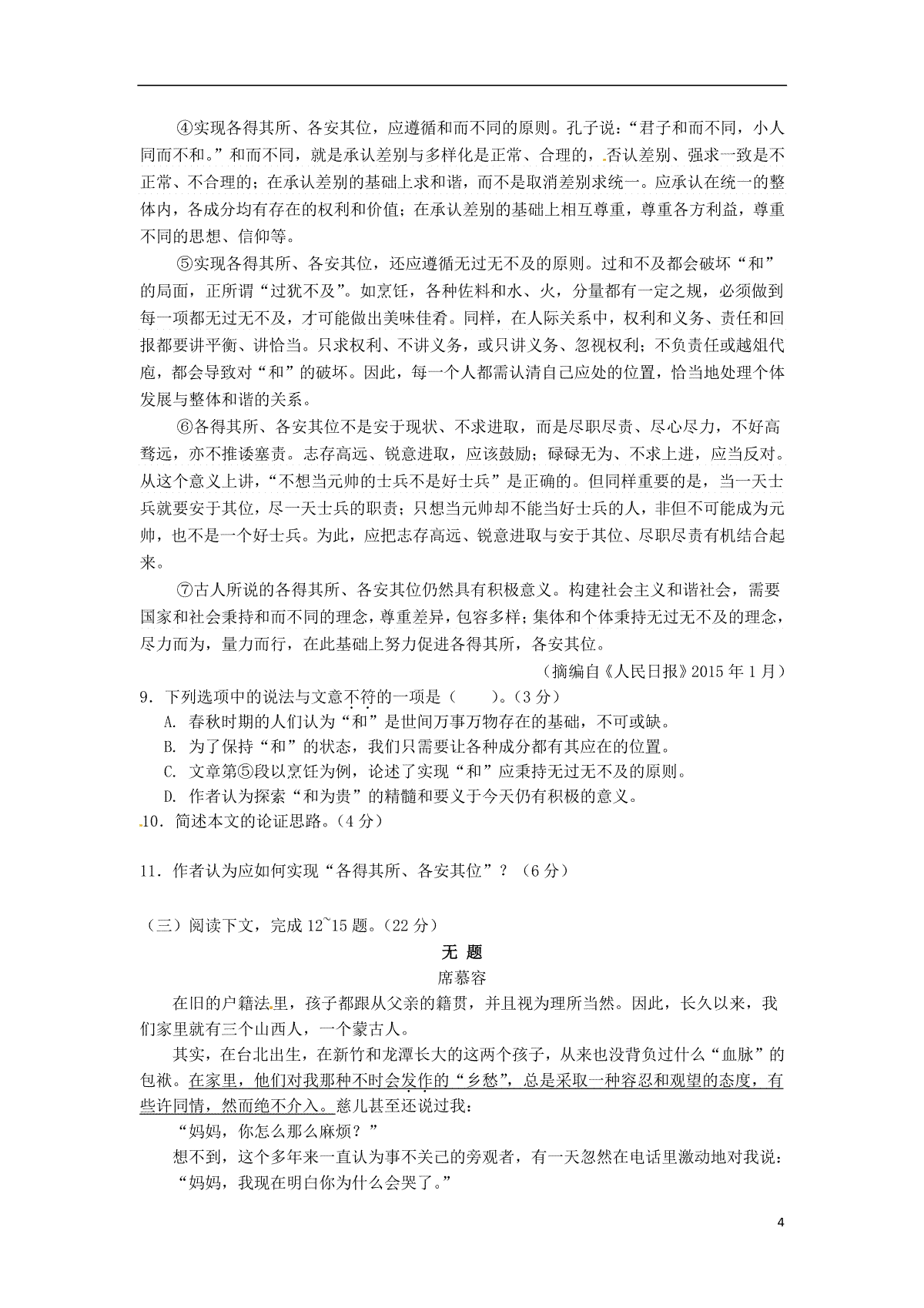 4.福建省漳州市2015年中考语文真题试题(含扫描答案)