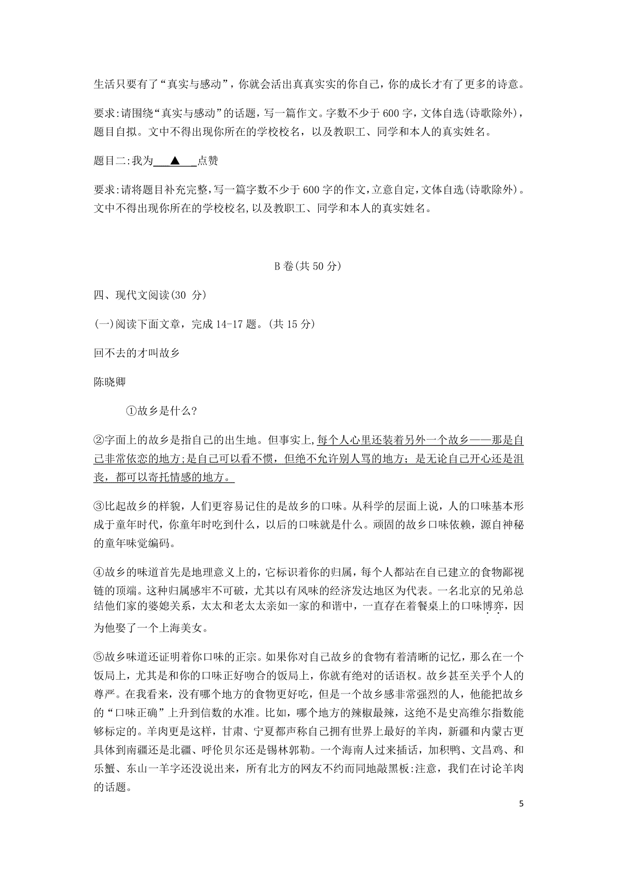 下载四川省凉山州2019年中考语文真题试题PDF格式或doc