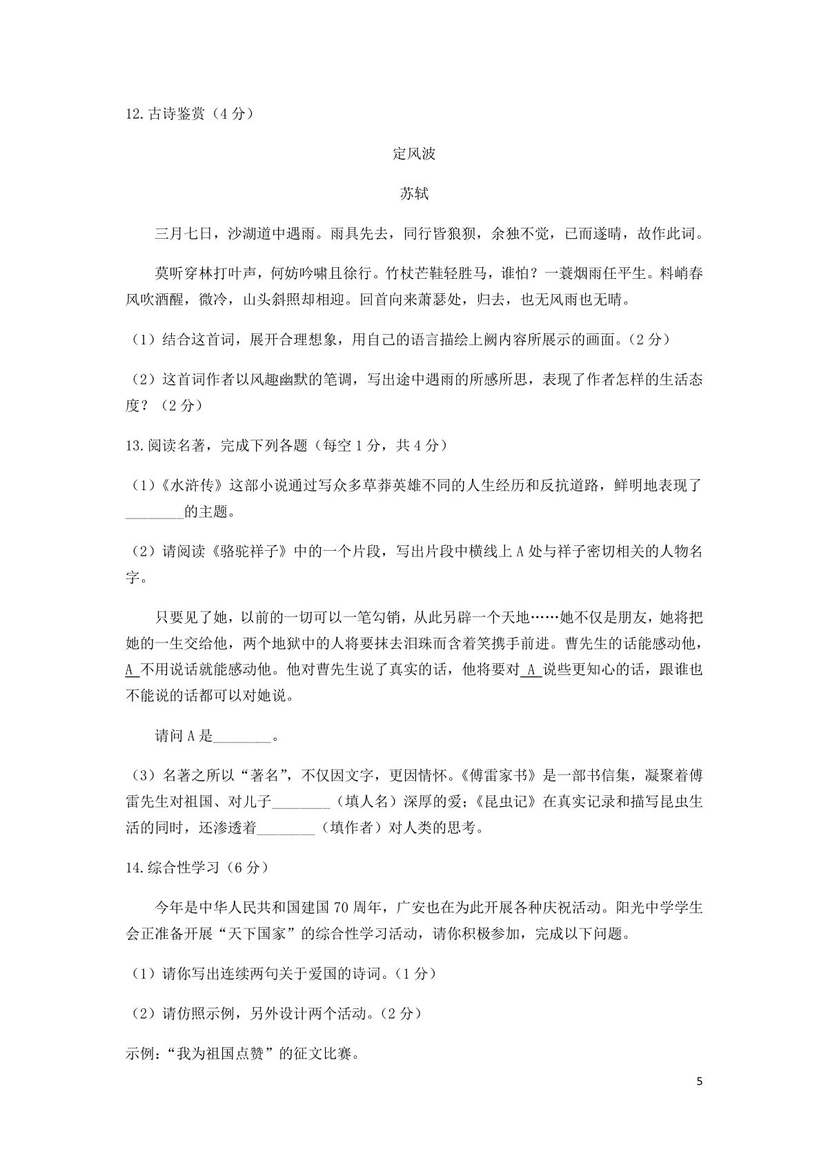 下载四川省广安市2019年中考语文真题试题PDF格式或doc
