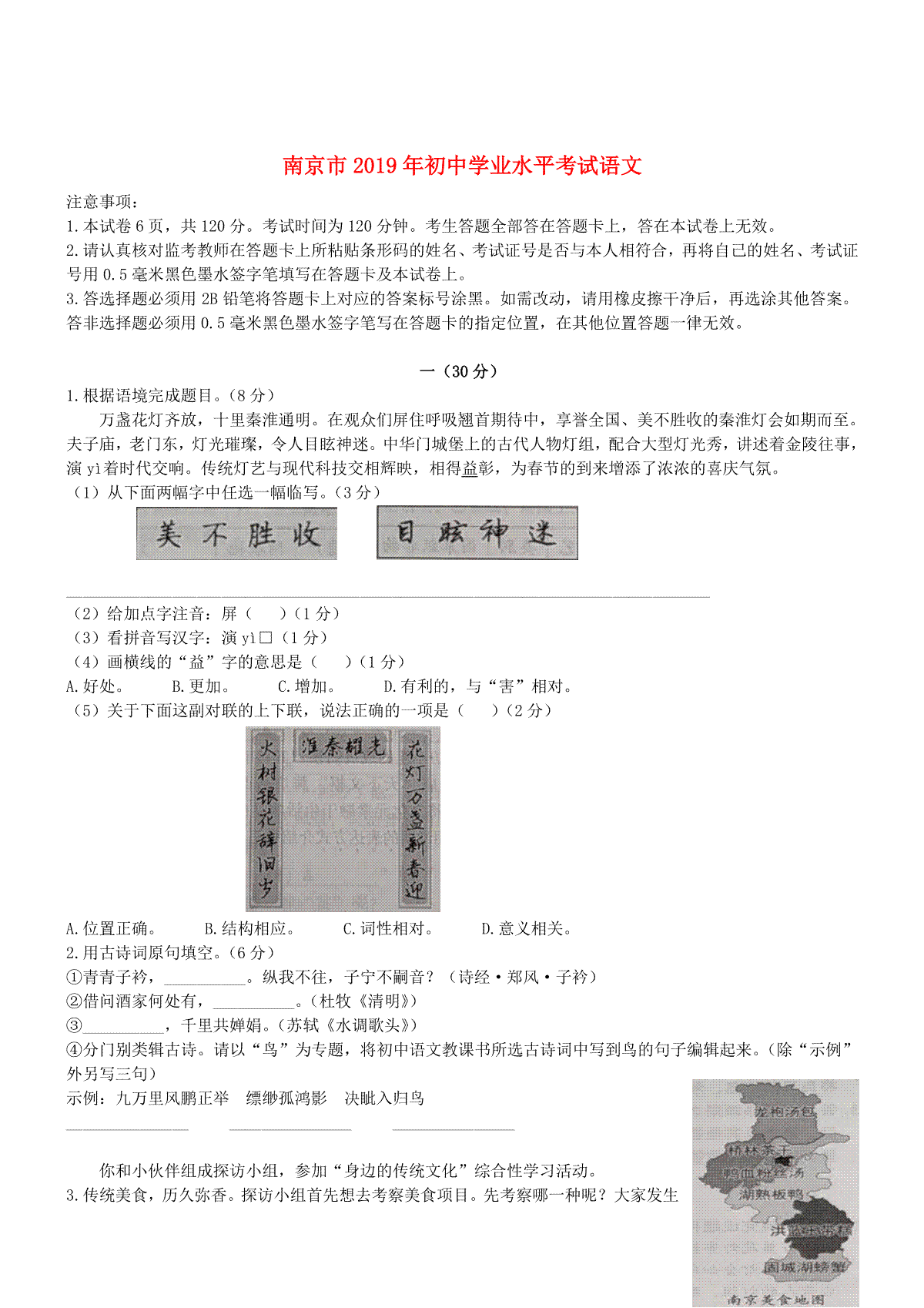 1.江苏省南京市2019年中考语文真题试题