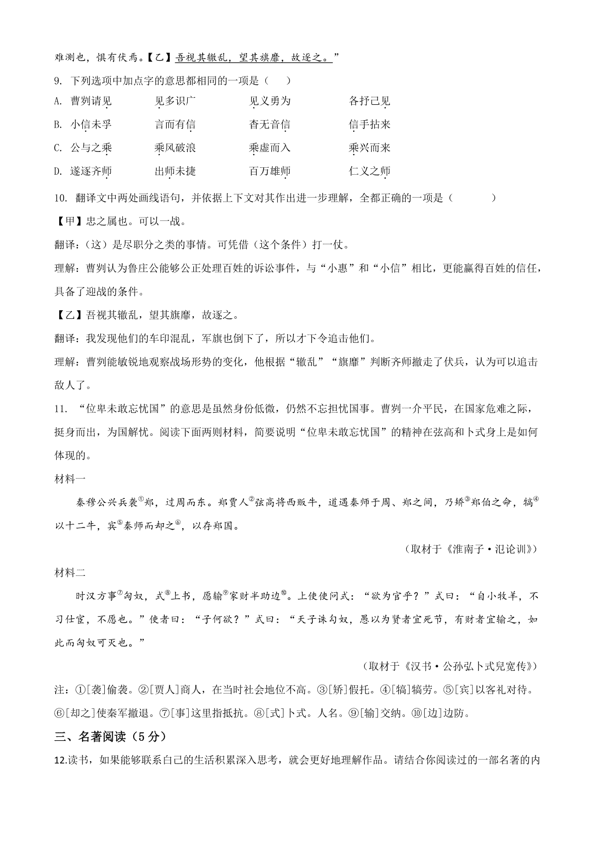 一、精品解析:北京市2020年中考语文试题(原卷版)