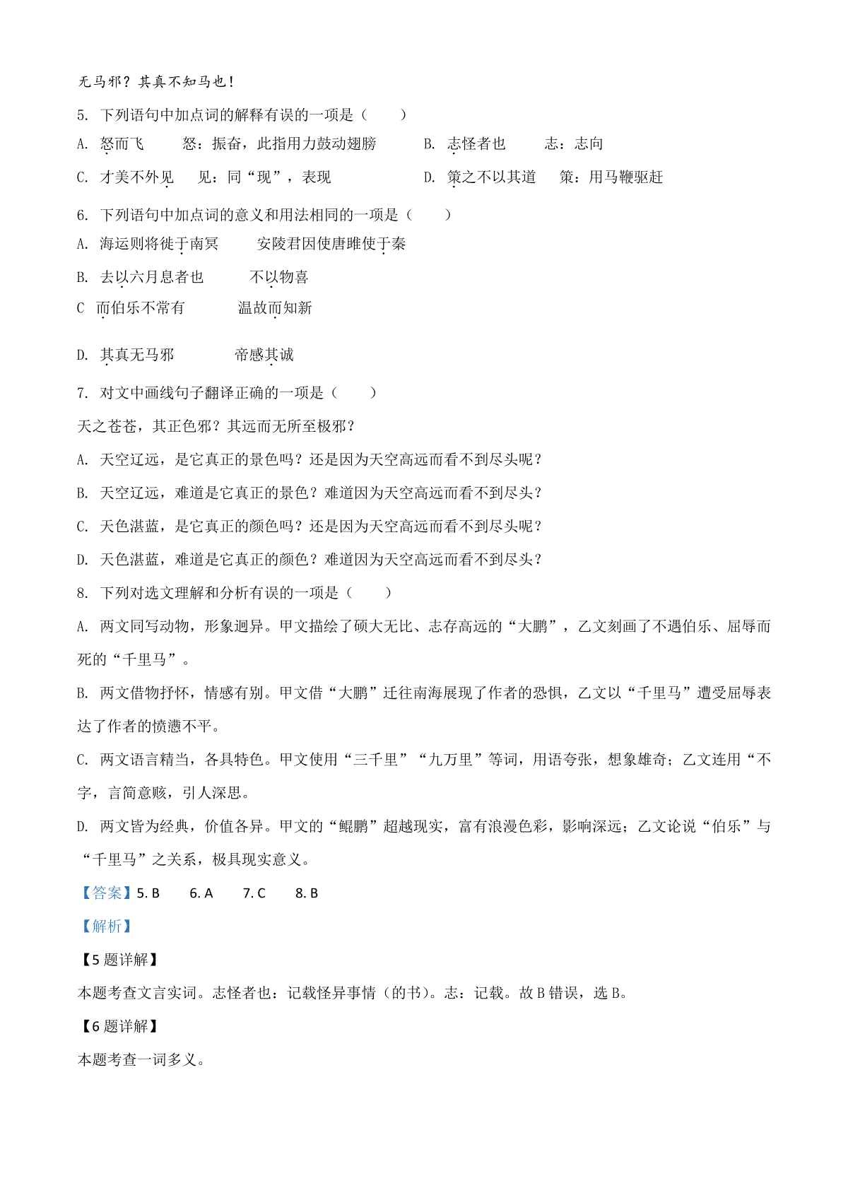 5.精品解析:四川省宜宾市2020年中考语文试题(解析版)