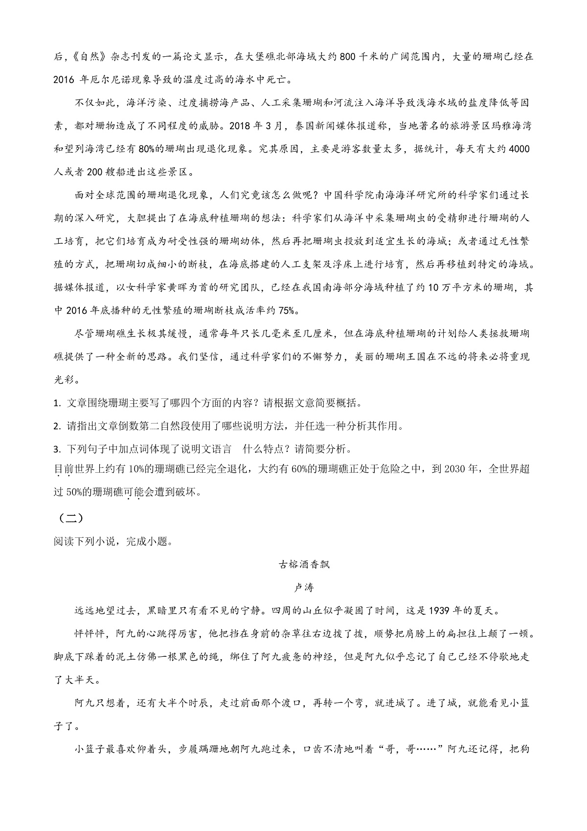 精品解析:四川省泸州市2020年中考语文试题(原卷版)