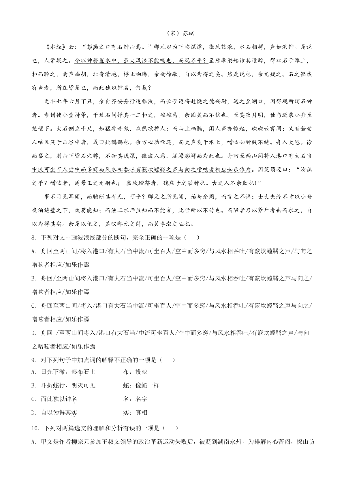 8.精品解析:四川省南充市2020年中考语文试题(原卷版)