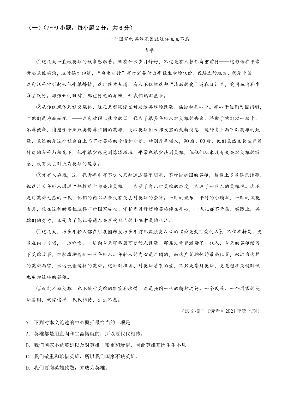下载广西贺州市2021年中考语文试题(解析版)PDF格式或doc