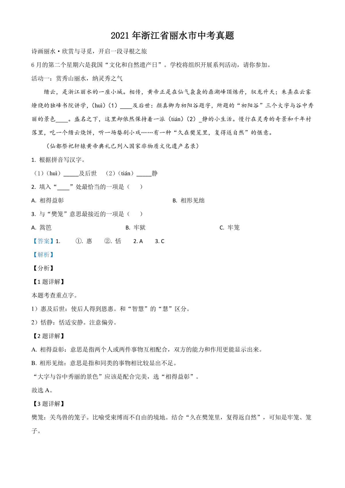 1.浙江省丽水市2021年中考语文试题(解析版)