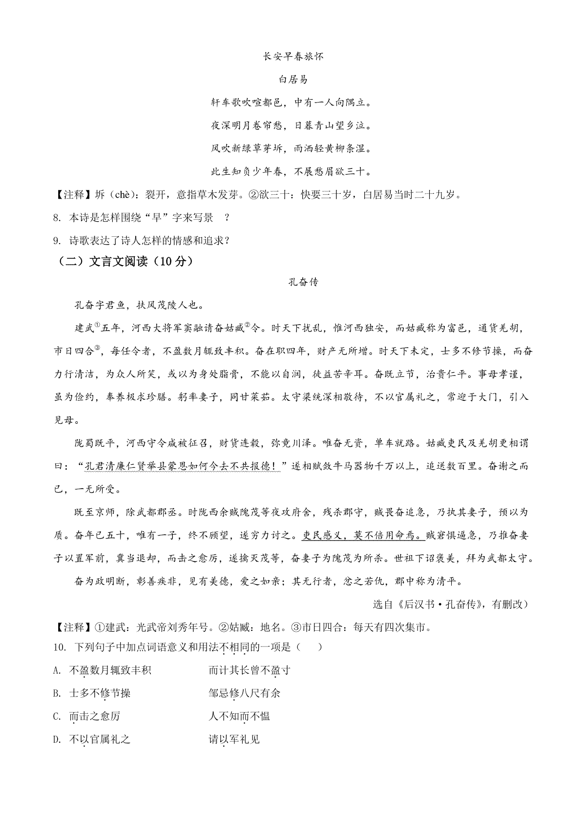 一、湖北省天门、仙桃、潜江、江汉油田2021年中考语文试题(原卷版)
