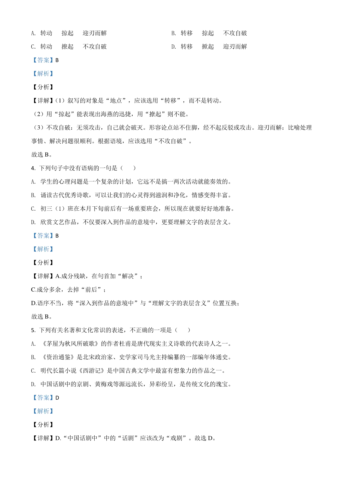 3.湖南省怀化市2021年中考语文试题(解析版)