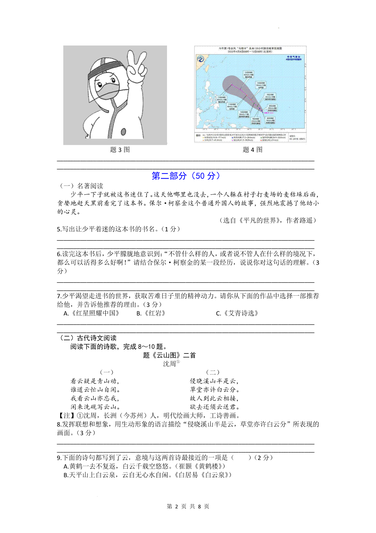 下载2022年江苏省苏州市中考语文真题PDF格式或doc