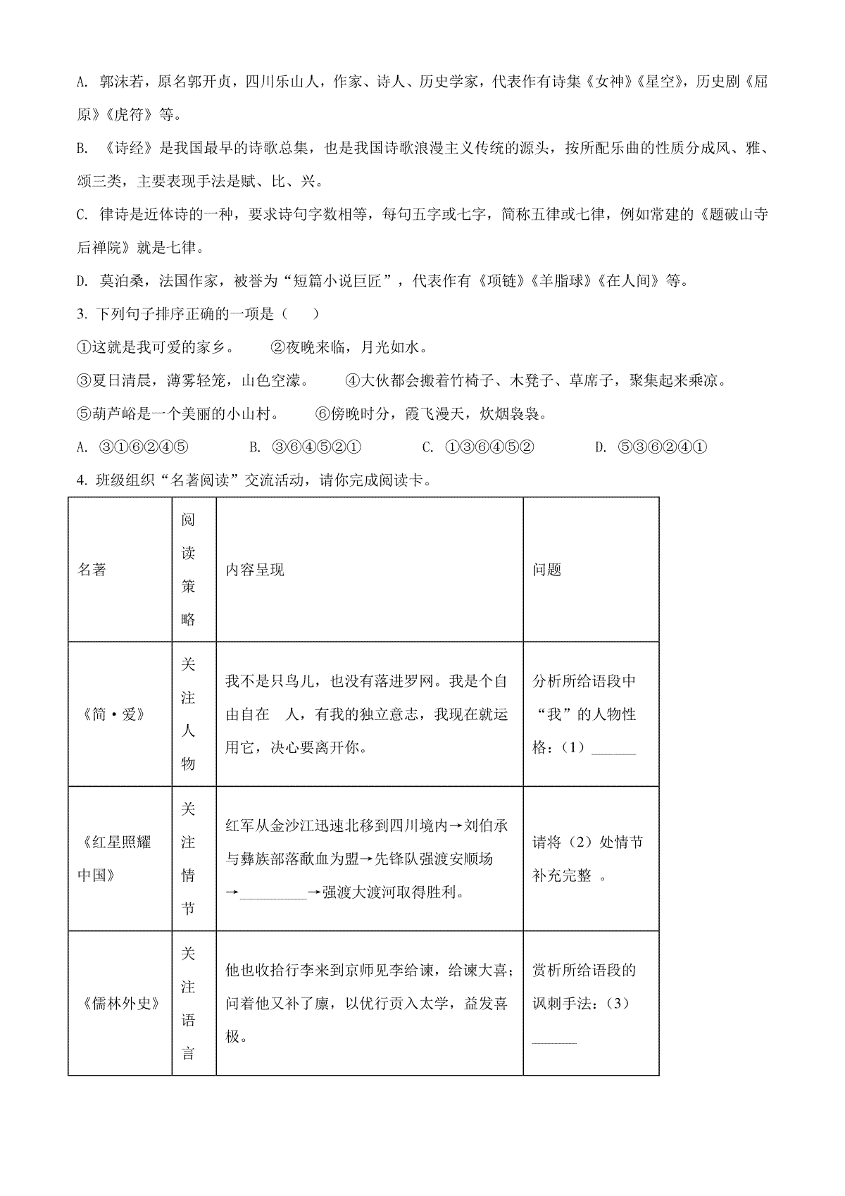 2.精品解析:2022年内蒙古包头市中考语文真题(解析版)
