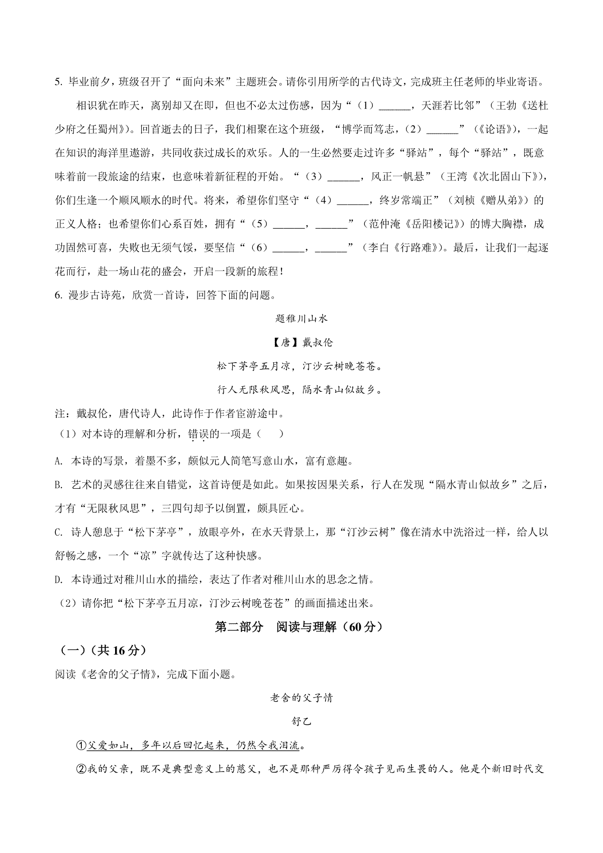 6.精品解析:2022年上海市中考语文试题(解析版)