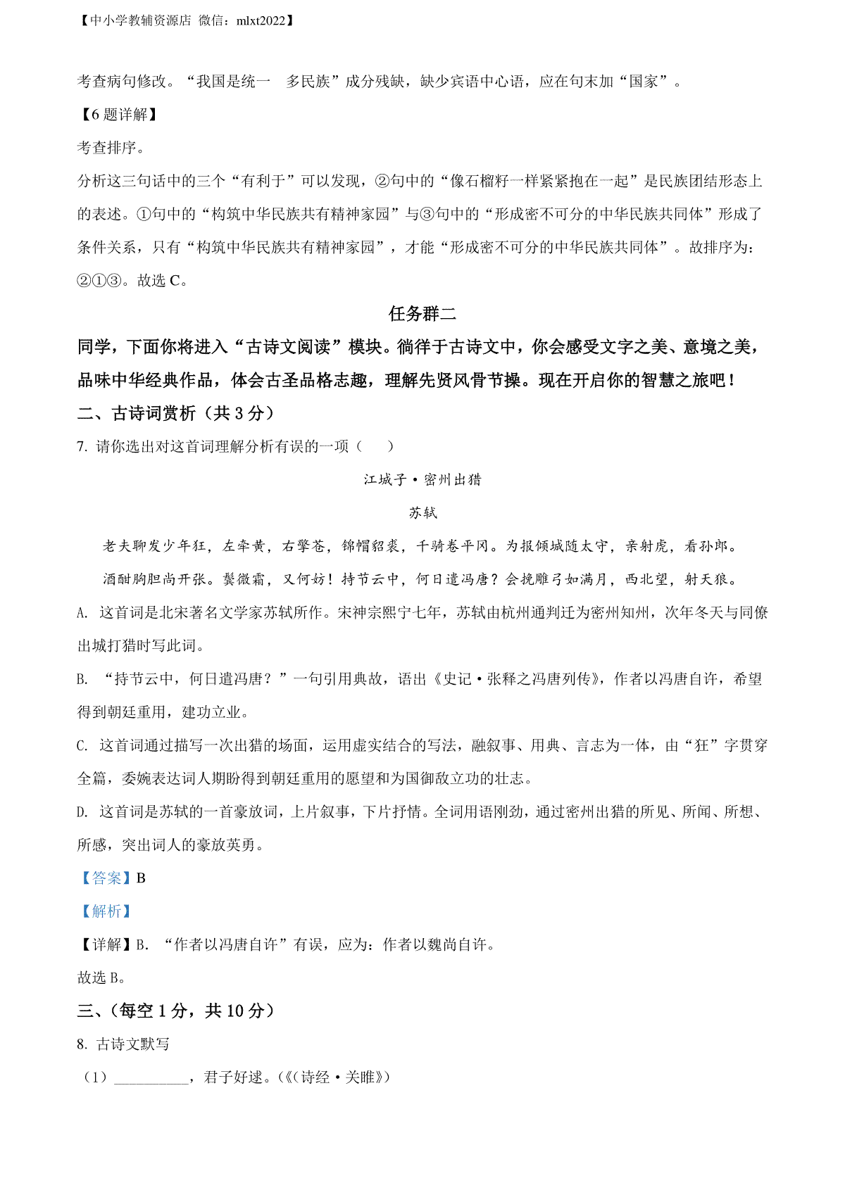5.精品解析:2022年内蒙古包头市中考语文真题(解析版)