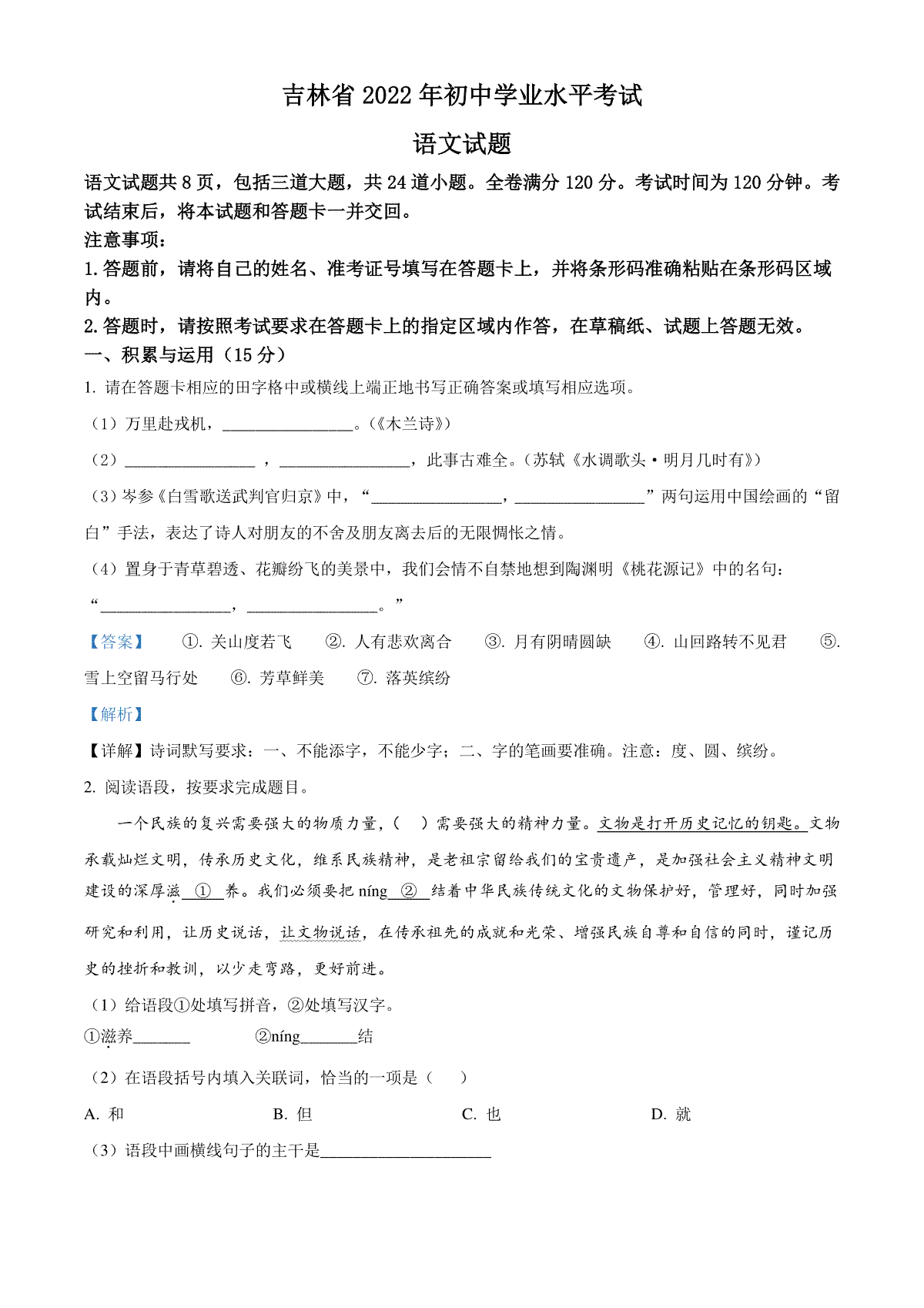 1.精品解析:2022年吉林省中考语文真题(解析版)