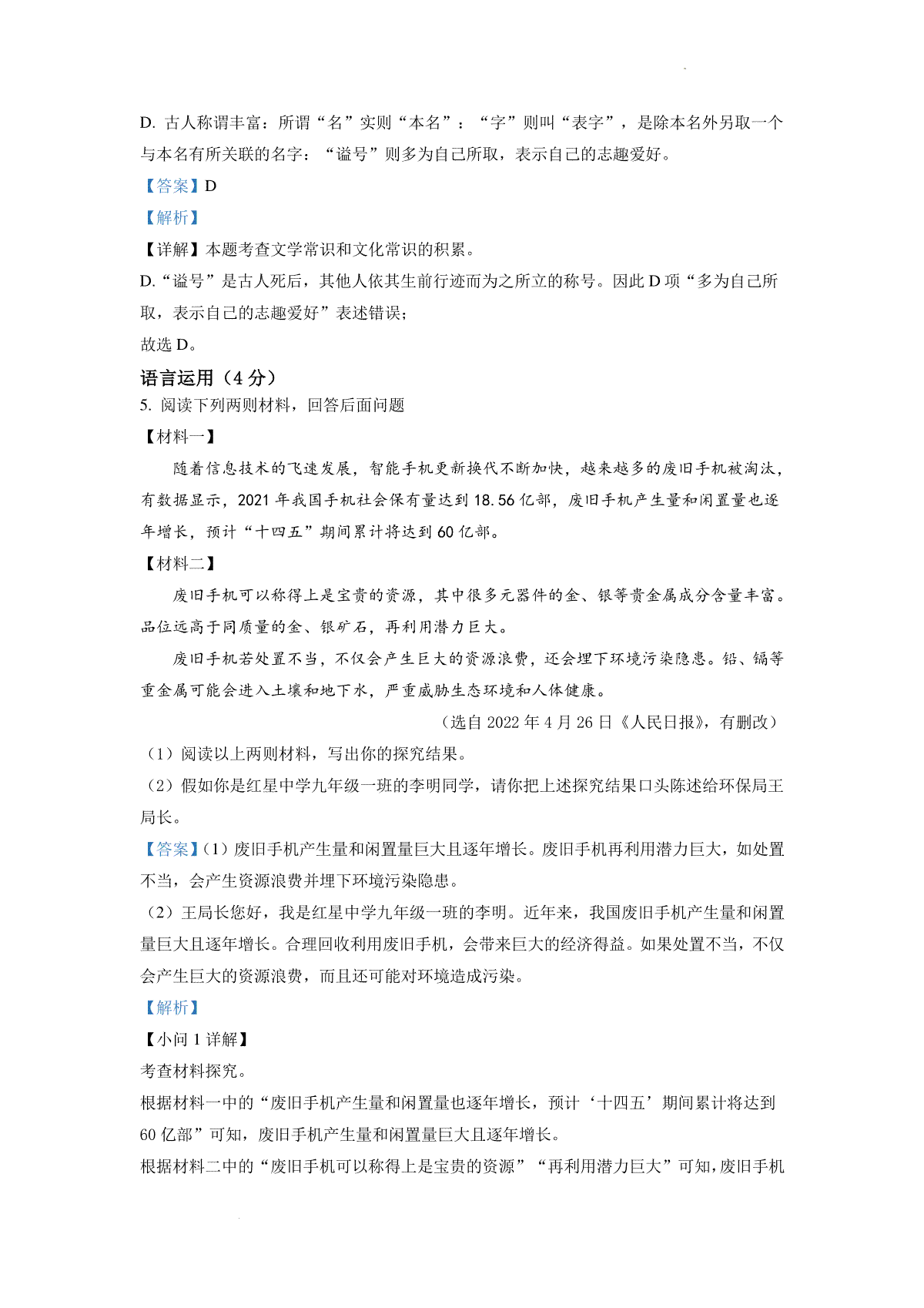 5.精品解析:2022年四川省绵阳市中考语文真题(解析版)