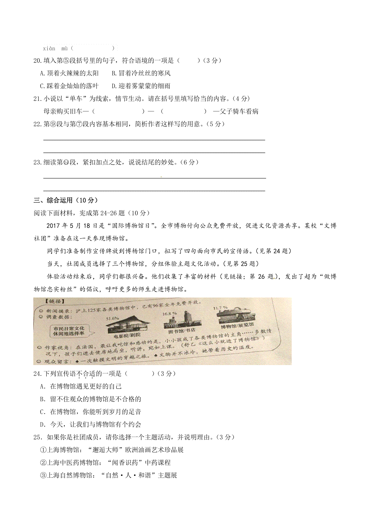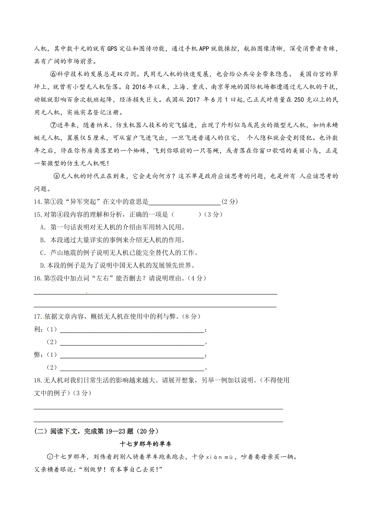 一、2017年上海中考语文试题及答案