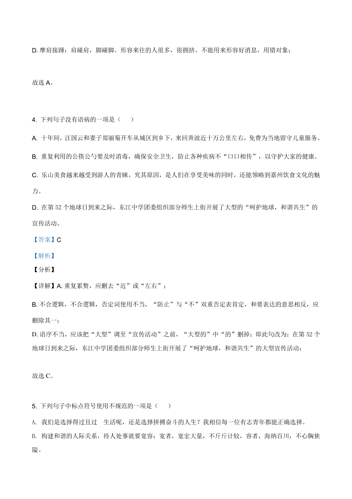精品解析:四川省乐山市2021年中考语文试题(解析版)