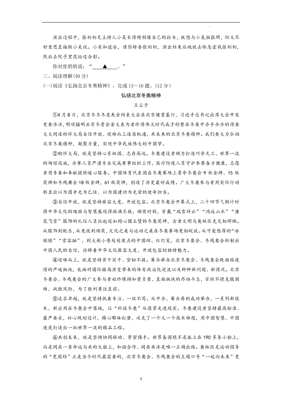 5.精品解析:四川省自贡市2021年中考语文试题(原卷版)