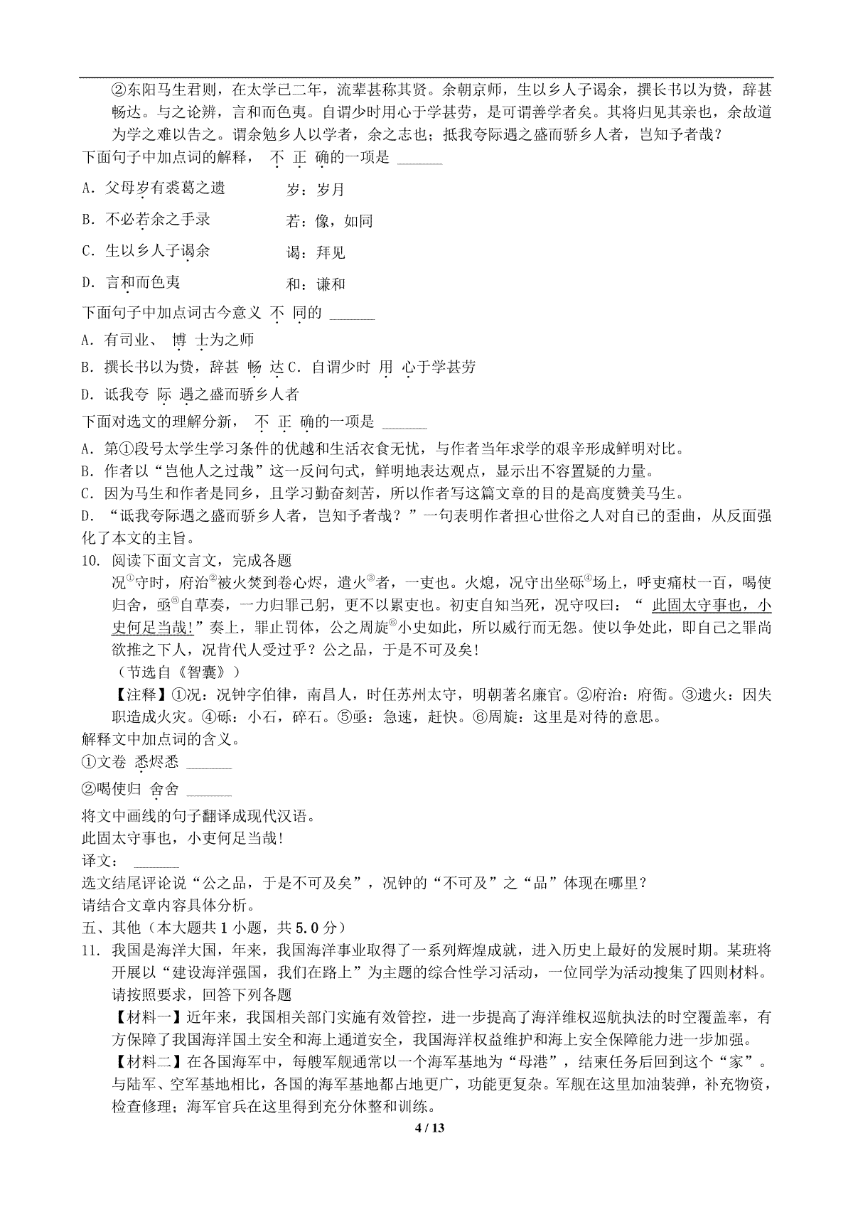 下载2019年天津市中考语文试题及答案PDF格式或doc