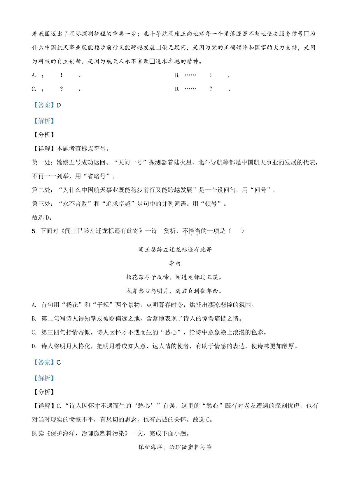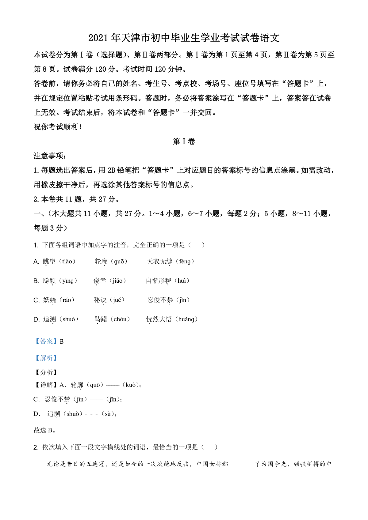 一、精品解析:天津市2021年中考语文试题(解析版)