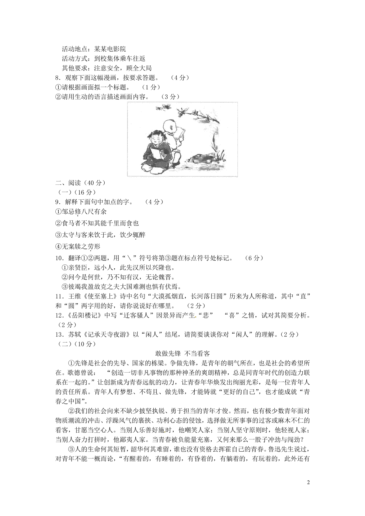 2.2015年宁夏中考语文真题及答案