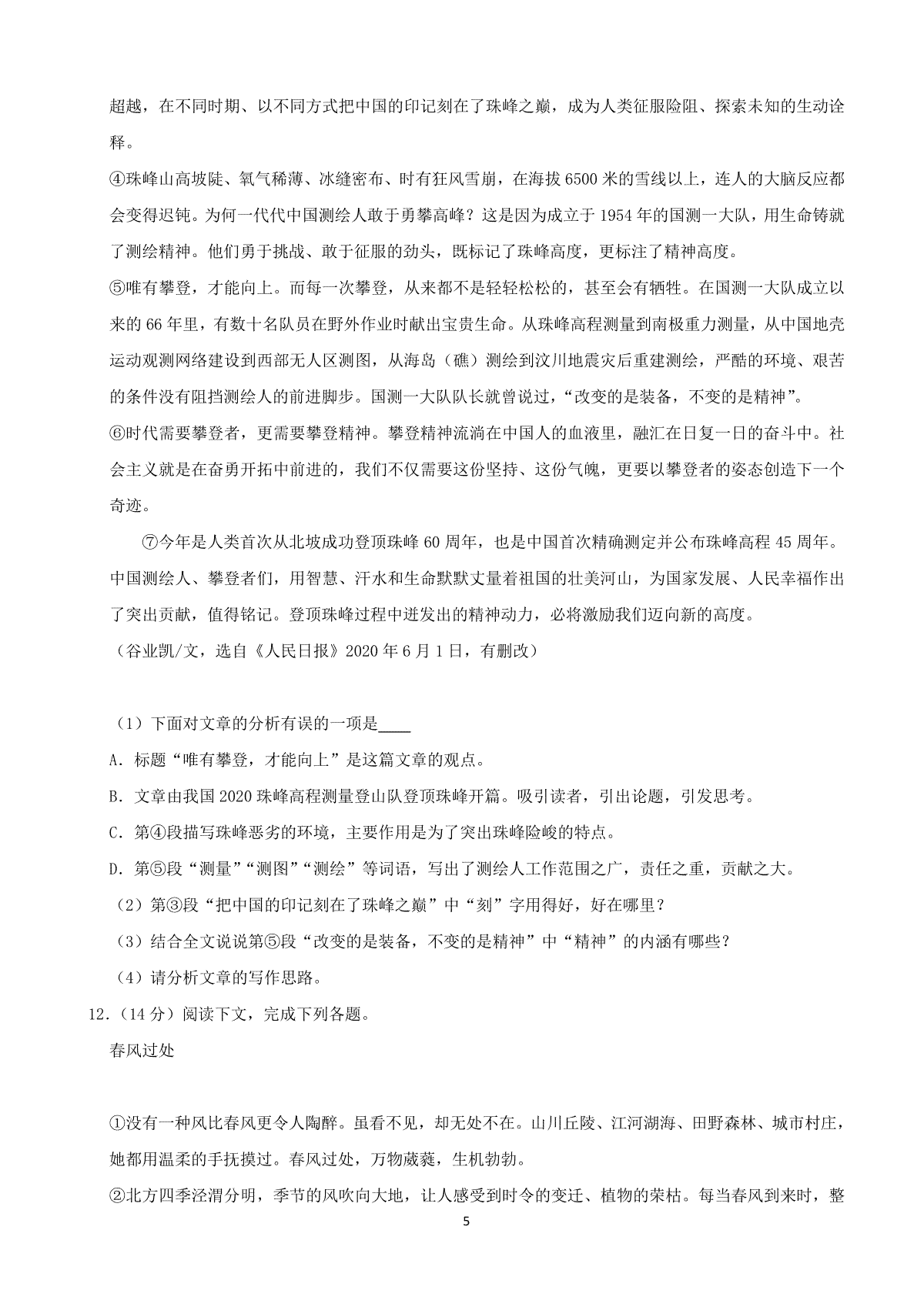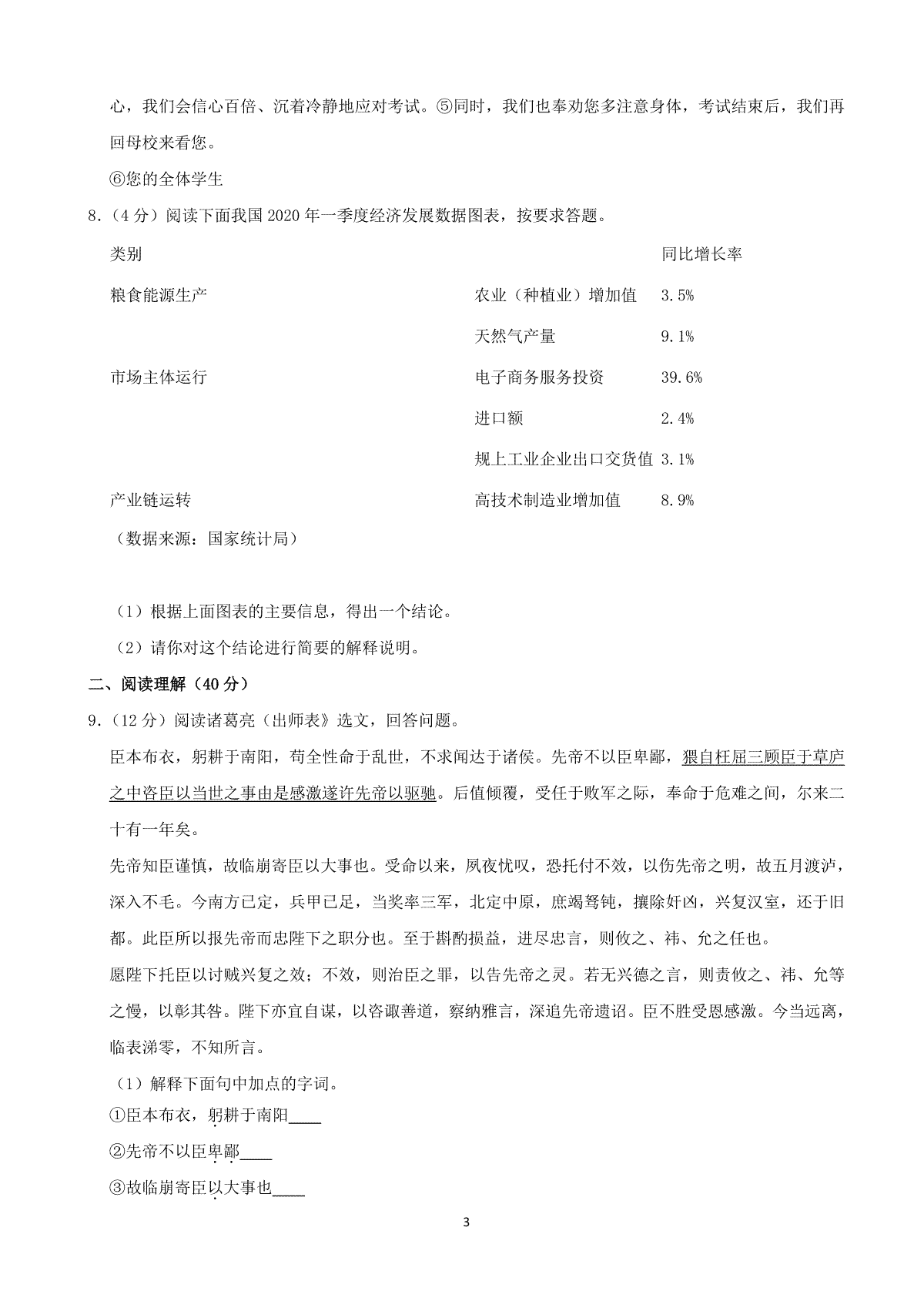 下载2020年宁夏中考语文试题试卷及答案PDF格式或doc