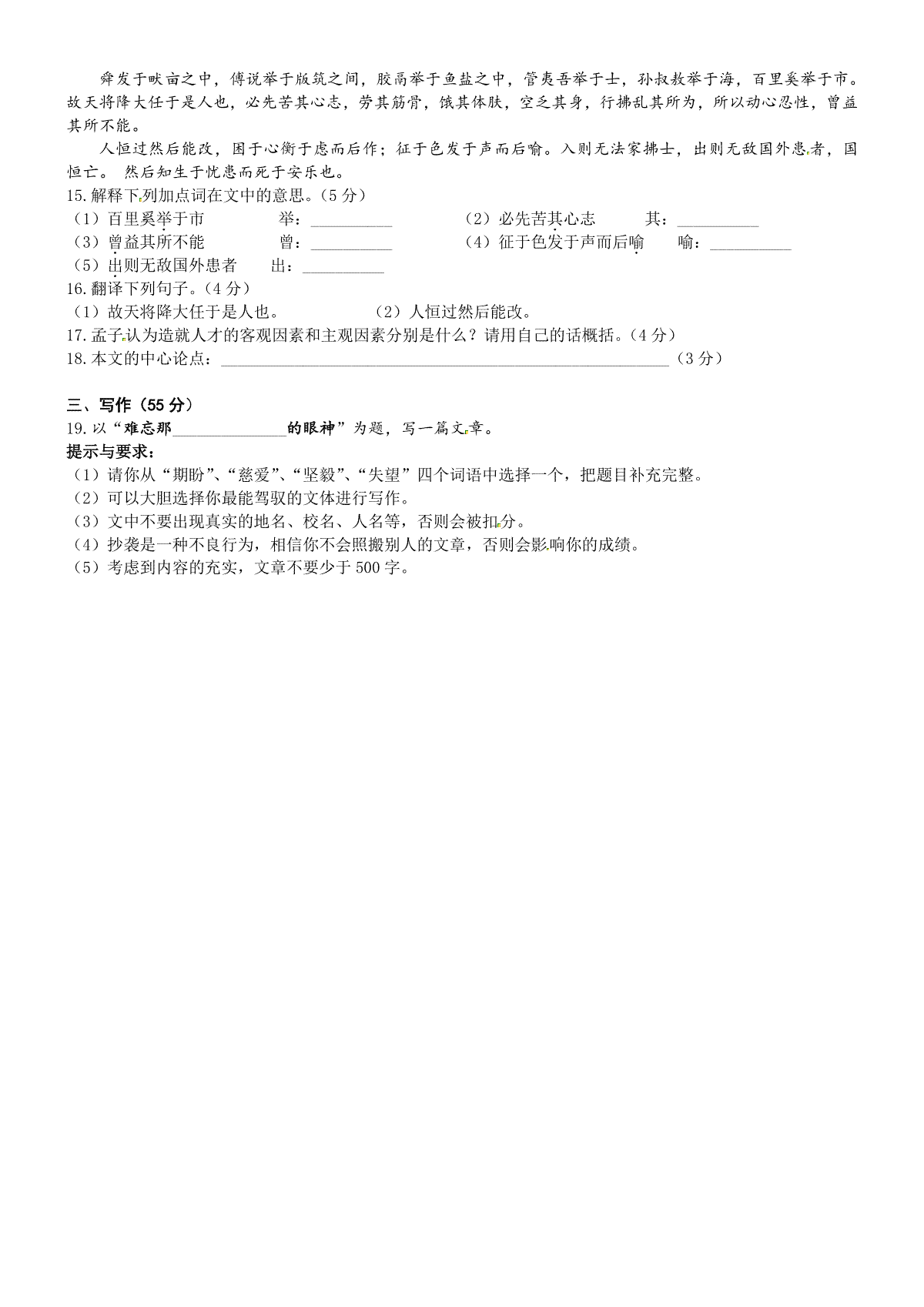 下载2015年安徽中考语文试题及参考答案PDF格式或doc