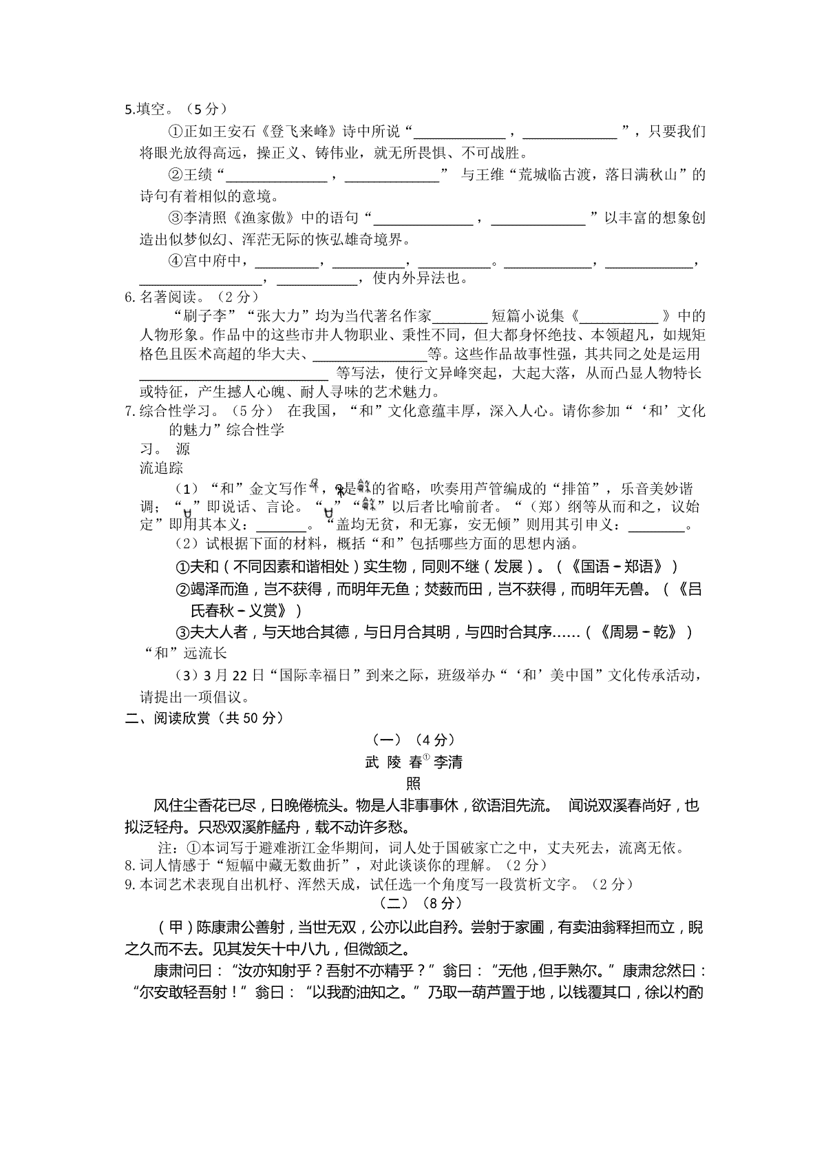 2.2018年山东省东营市中考语文试题(含答案)