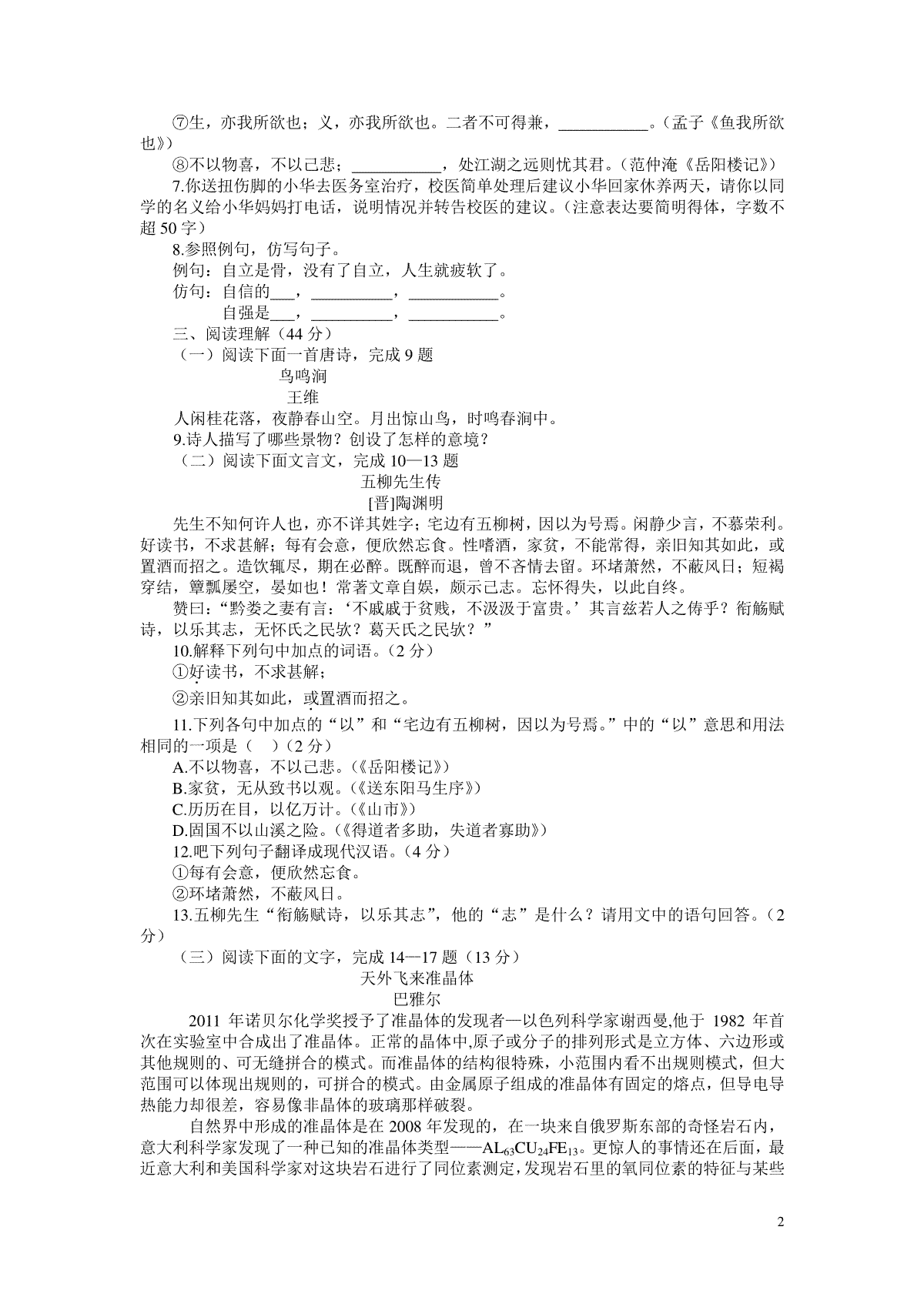 下载2012年山东省临沂市语文中考试题+答案PDF格式或doc