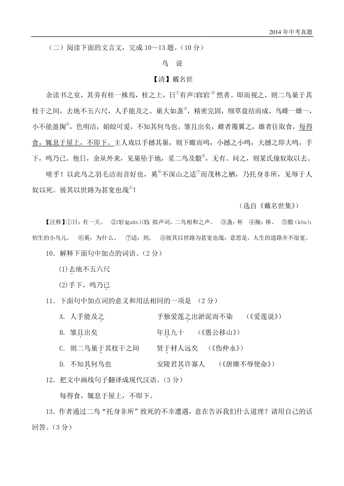 如果你想下载2014年山东省临沂市语文中考试题+答案DOC或PDF版,请点击本文末链接!