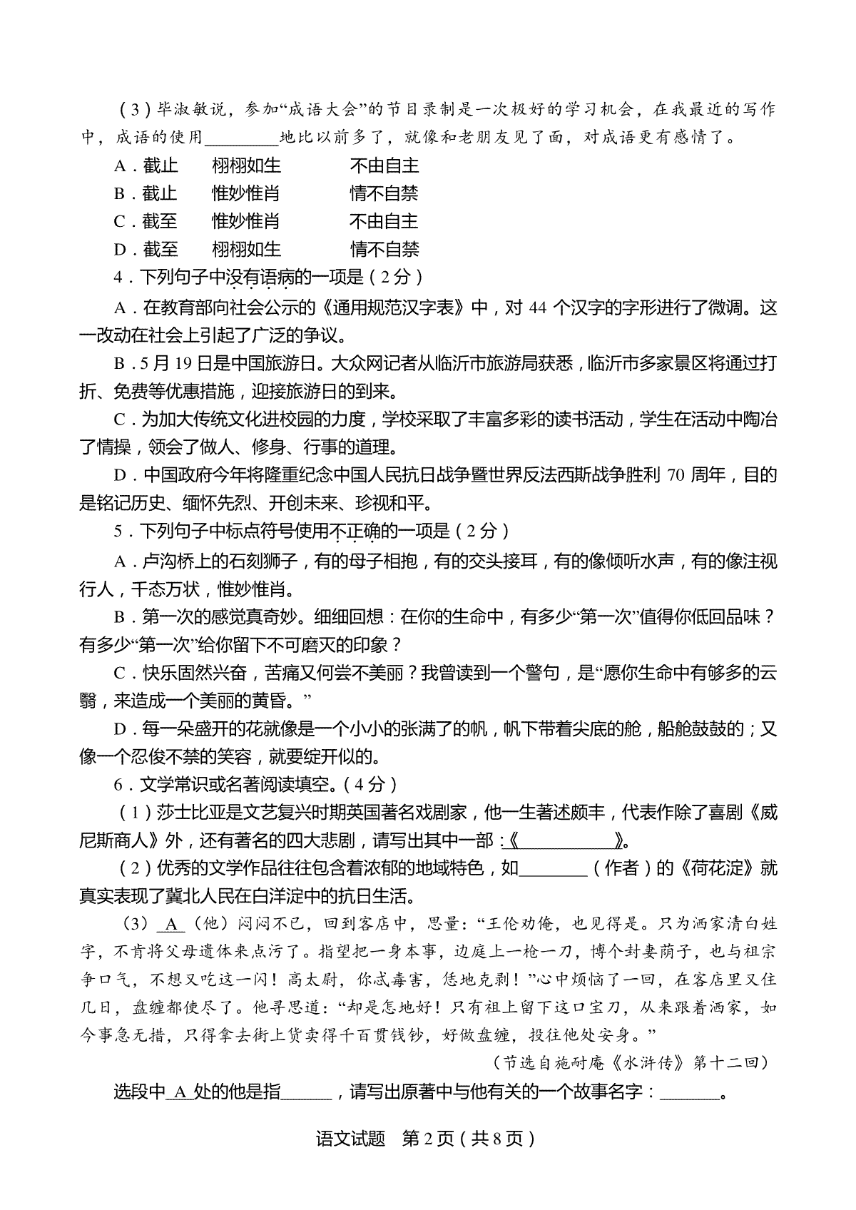 2.2014年山东省临沂市语文中考试题+答案