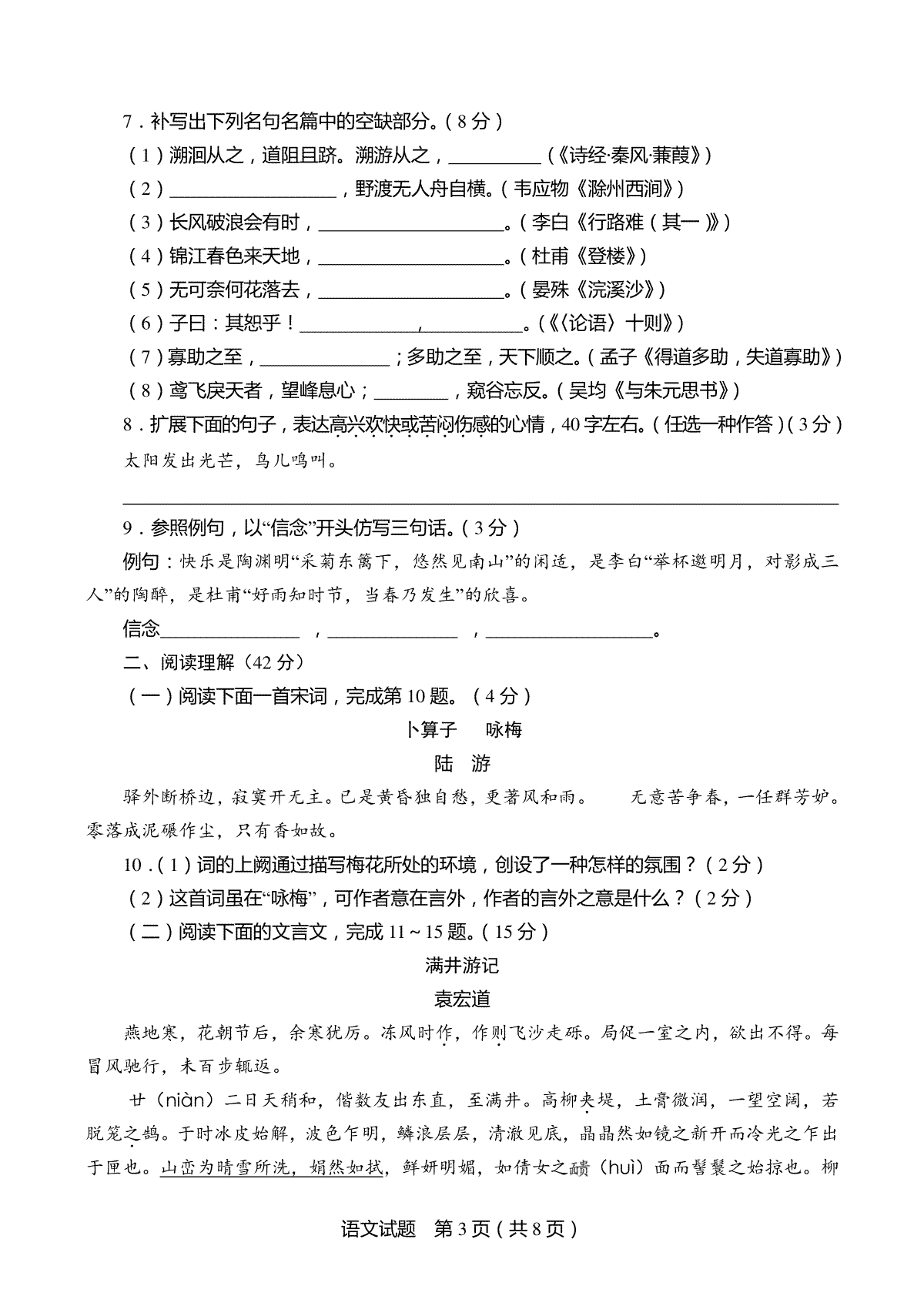 陕西省2021年中考语文试题(原卷版)