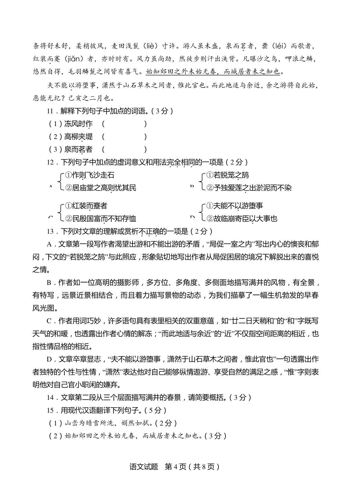 8.2008年山东省临沂市语文中考试题+答案