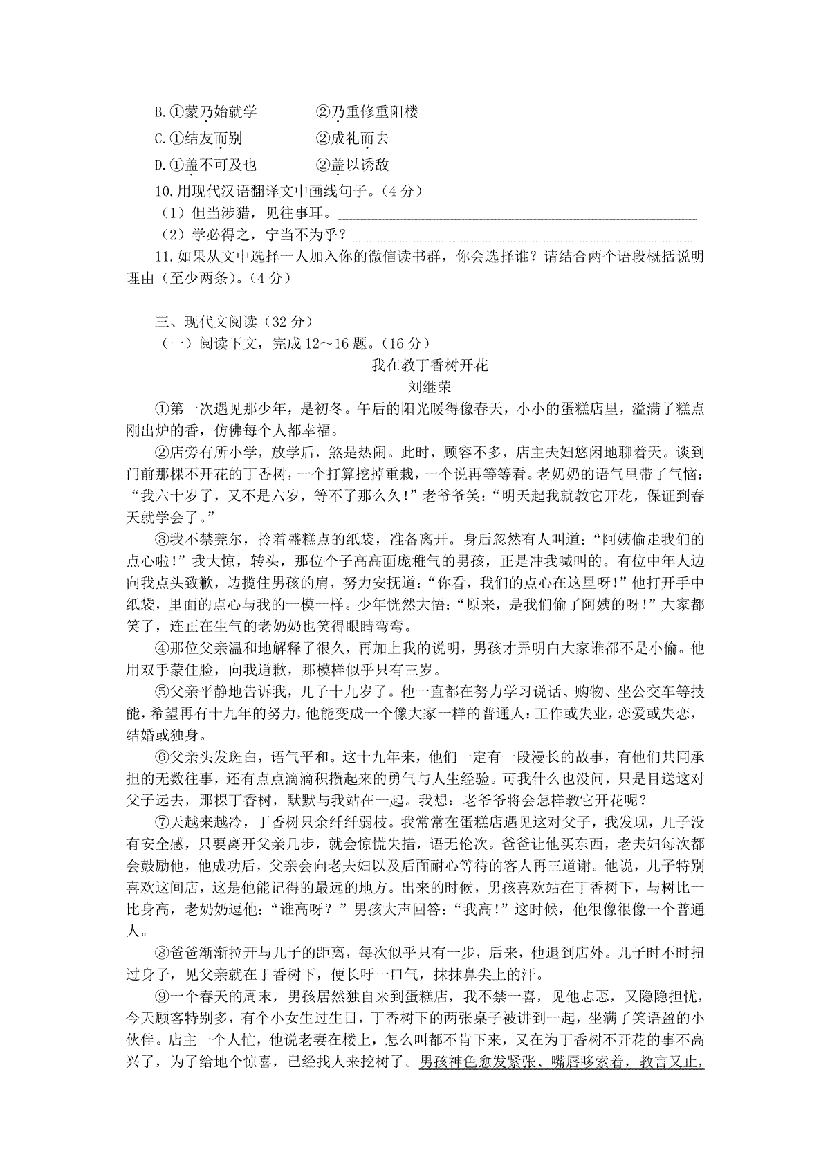 重庆市2021年中考语文试题(B卷)(原卷版)