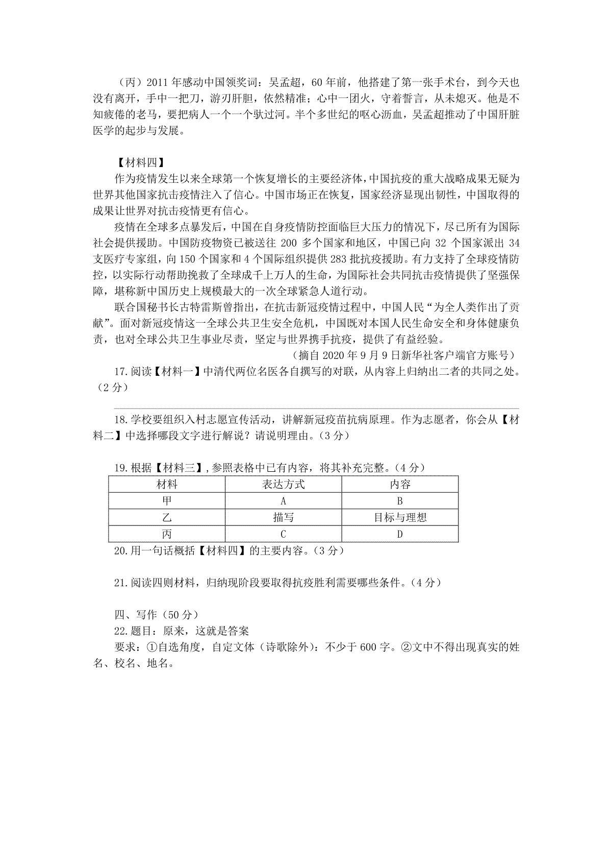 下载2021年山东省威海市中考语文真题(原卷版)PDF格式或doc