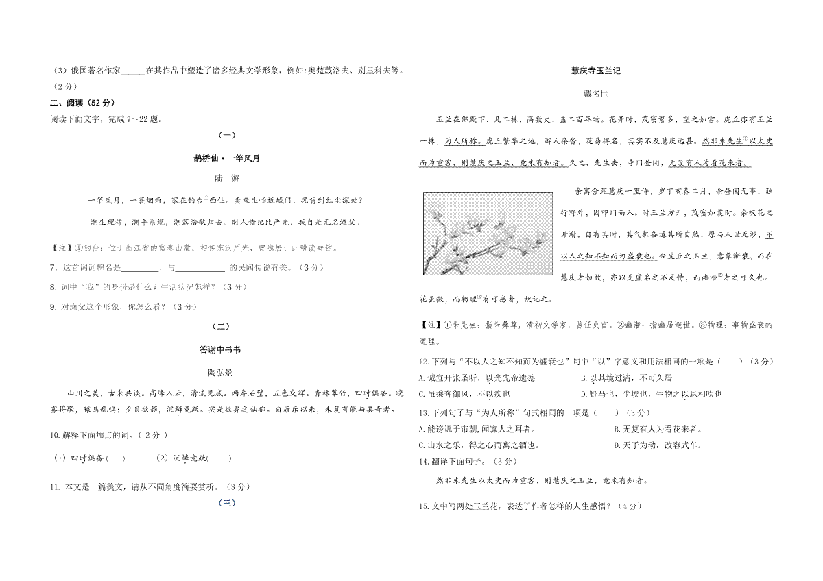 重庆市2021年中考语文试题(B卷)(原卷版)