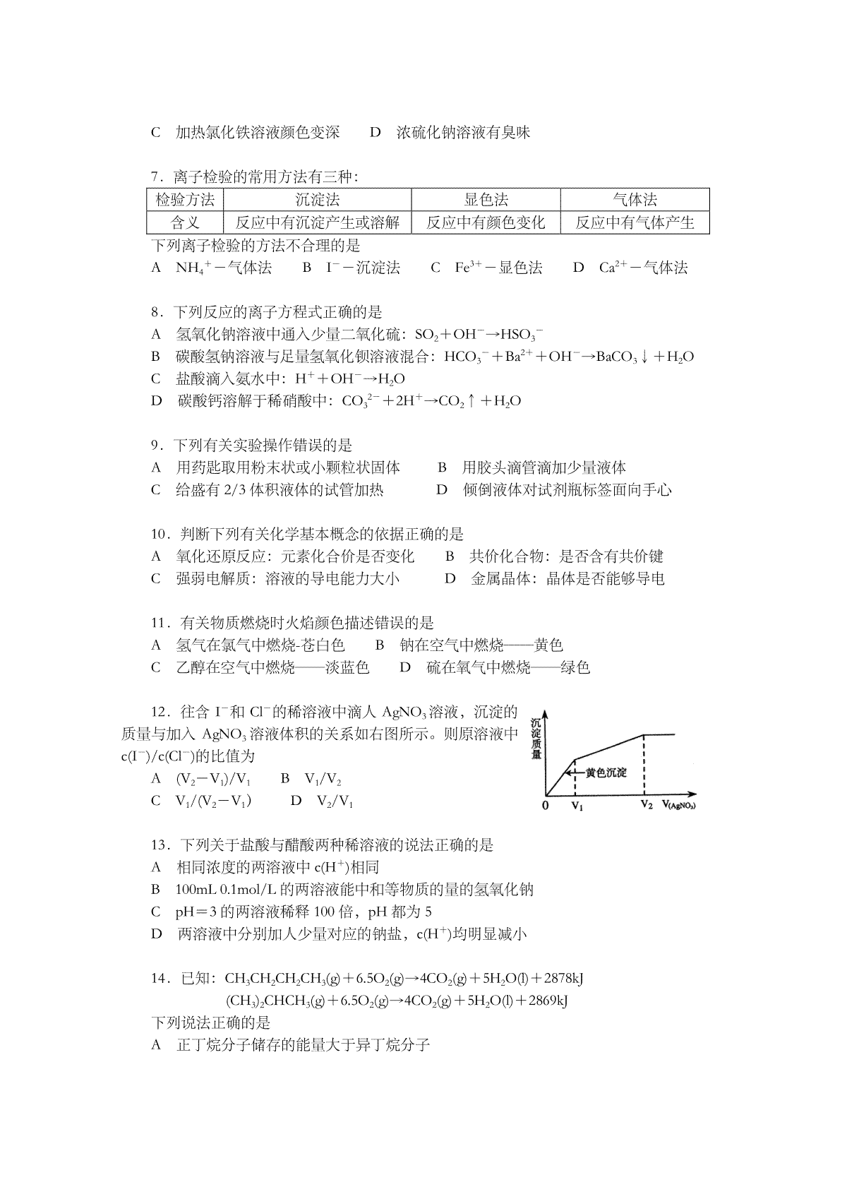 2007年上海市高考化学试题及答案