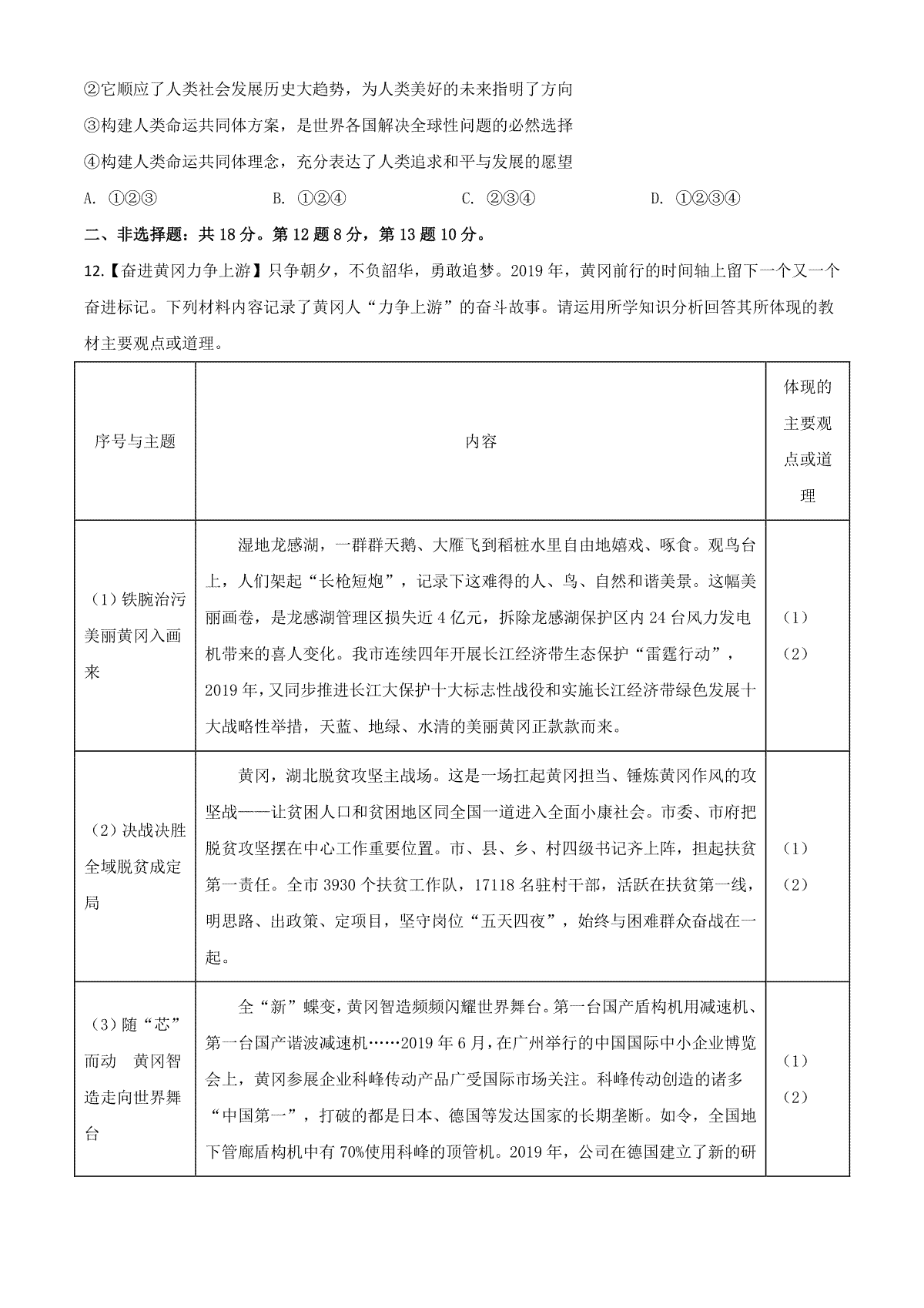 一、精品解析:湖北省黄冈市2020年中考道德与法治试题(原卷版)