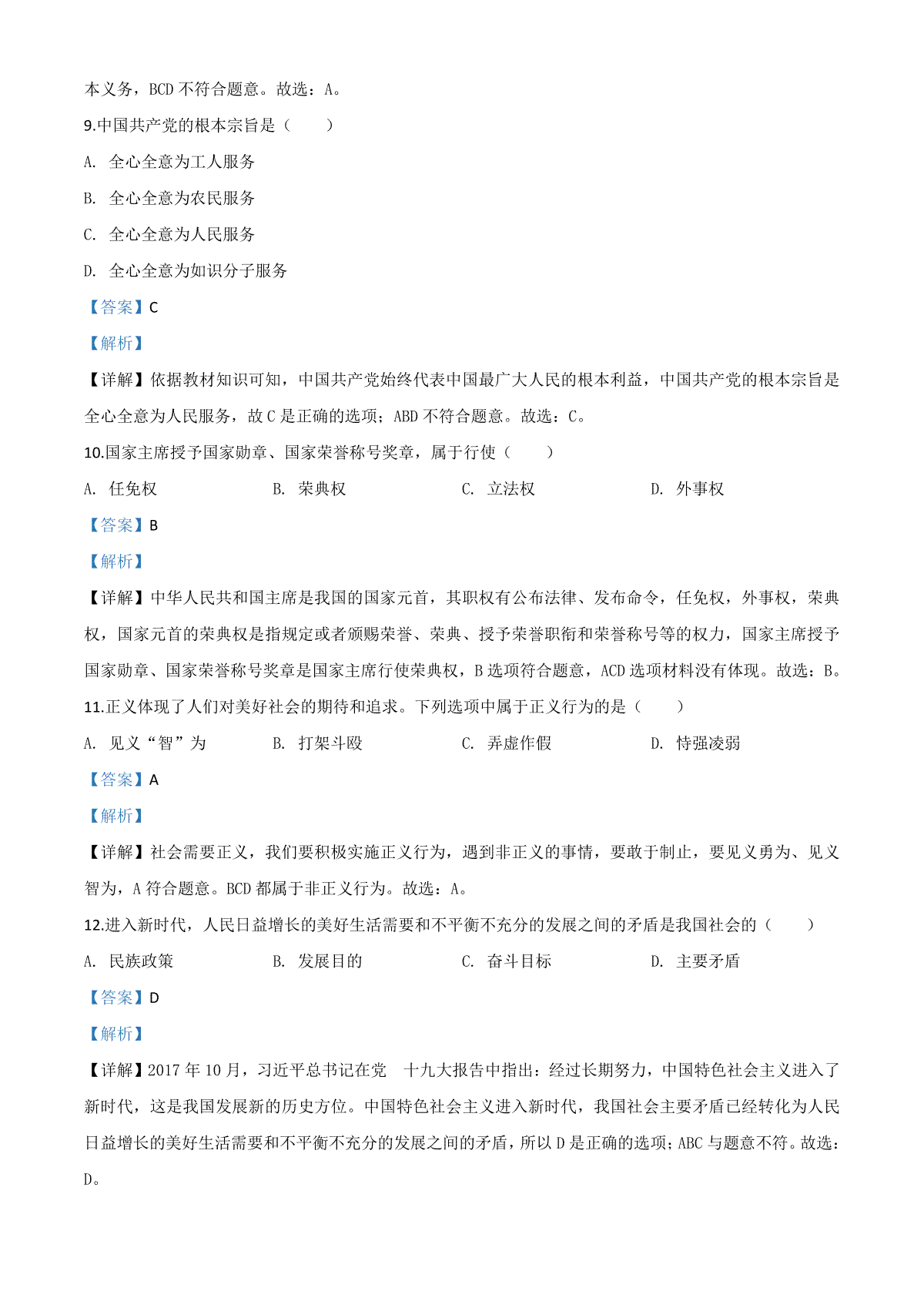 一、精品解析:黑龙江省绥化市2020年中考道德与法治试题(解析版)