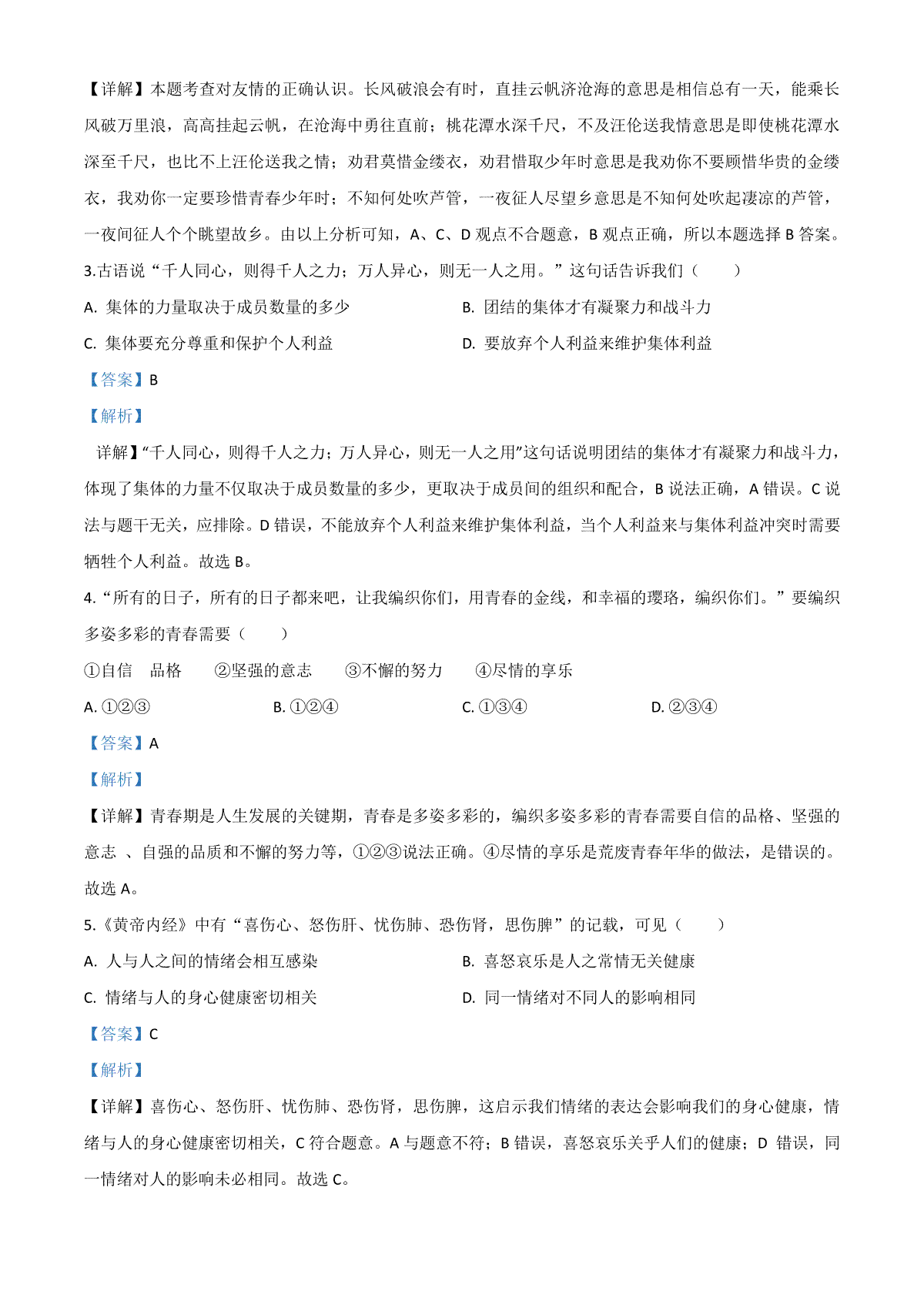 7.精品解析:黑龙江省绥化市2020年中考道德与法治试题(解析版)