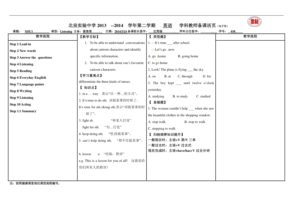 3.外研版八年级英语下册教学案:Module 1 Exercise 期中复习1